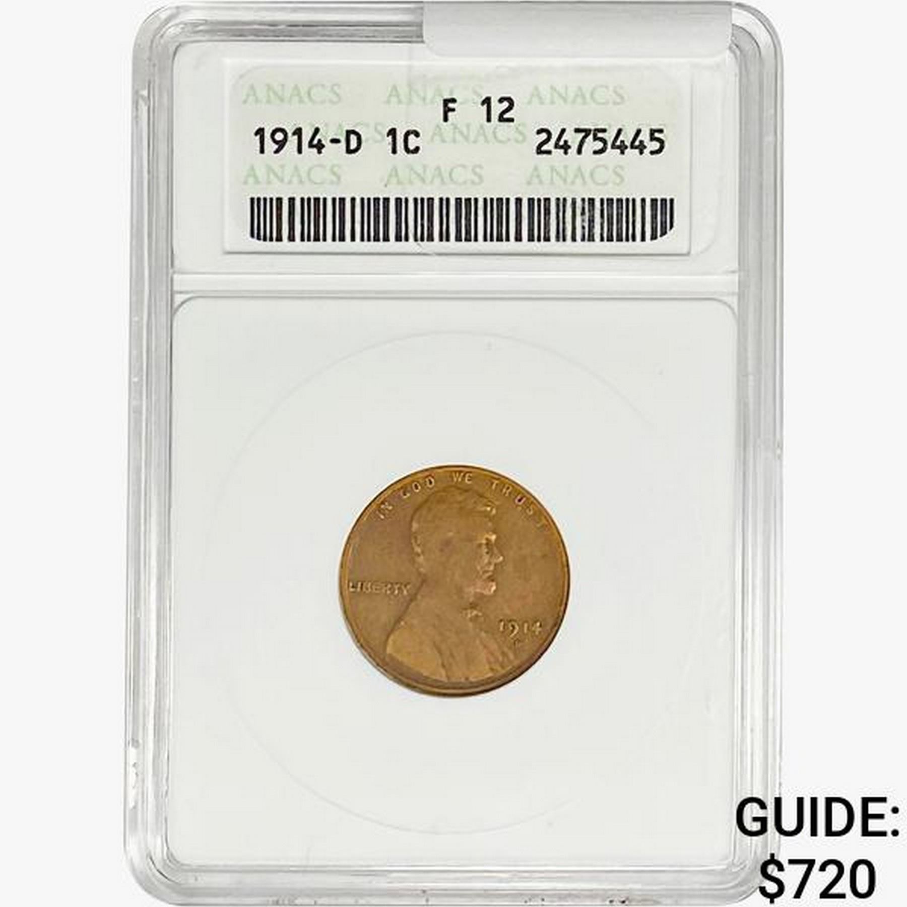 1914-D Wheat Cent ANACS F12