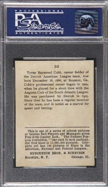 1914 E145-1 Cracker Jack Ty Cobb #30 PSA EX-MT 6.