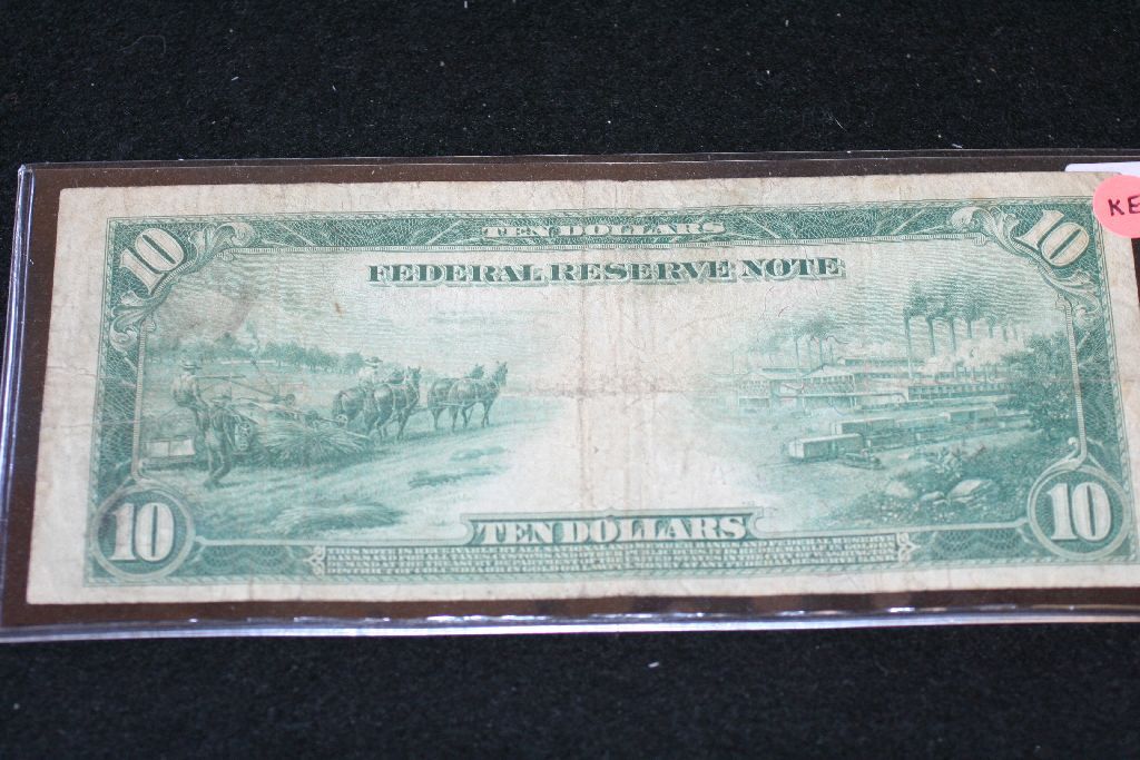 1914 Federal Reserve Note $10; Blue Seal, Large Jackson Bill
