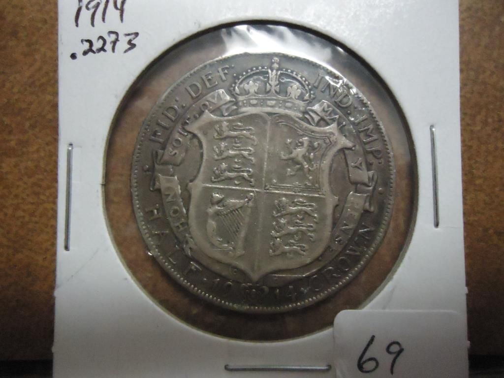 1914 GREAT BRITAIN SILVER HALF CROWN .2273 OZ. ASW