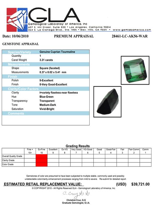 In the event that an item is listed as having an "Appraisal Estimate", this represents WAR's in-house estimate of what the item would appraise for at Gem Labs of America (GLA), Beverly Hills, CA. Actual appraisal of the item at GLA is the responsibility of the Bidder, however WAR may assist, at its discretion, in related logistics. WAR does provide the following guaranty (the "WAR 5% Loose Gem Guaranty") relative to Appraisal Estimate values of LOOSE GEMS: In the event that the GLA appraised value is not such an amount that the Bidder's winning bid is five percent (5%) or less of the GLA appraised value, then WAR, in it's discretion, will either refund such amount of the Bidder's winning bid and related charges so that the winning bid equals five percent (5%) of the GLA appraised value, or, instead issue a full refund on the item and reimburse the Bidder for the GLA appraisal fees. The Bidder may also opt to retain the item, in which case the WAR 5% Gem Guaranty shall not apply relative to the particular item.