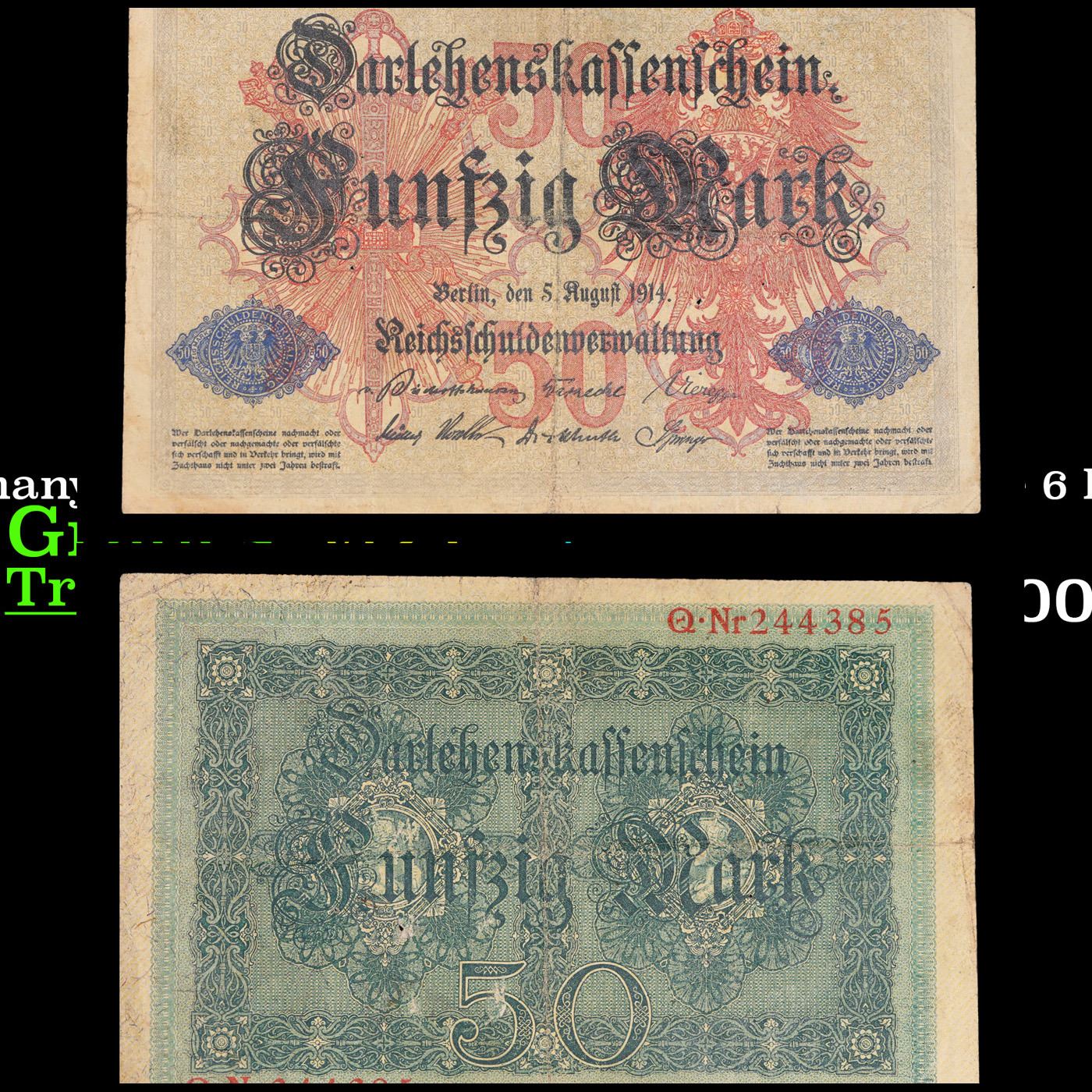 1914 Germany 50 Marks WW1 First Issue P# 49a, Rare 6 Digit Serial! Grades vf+.