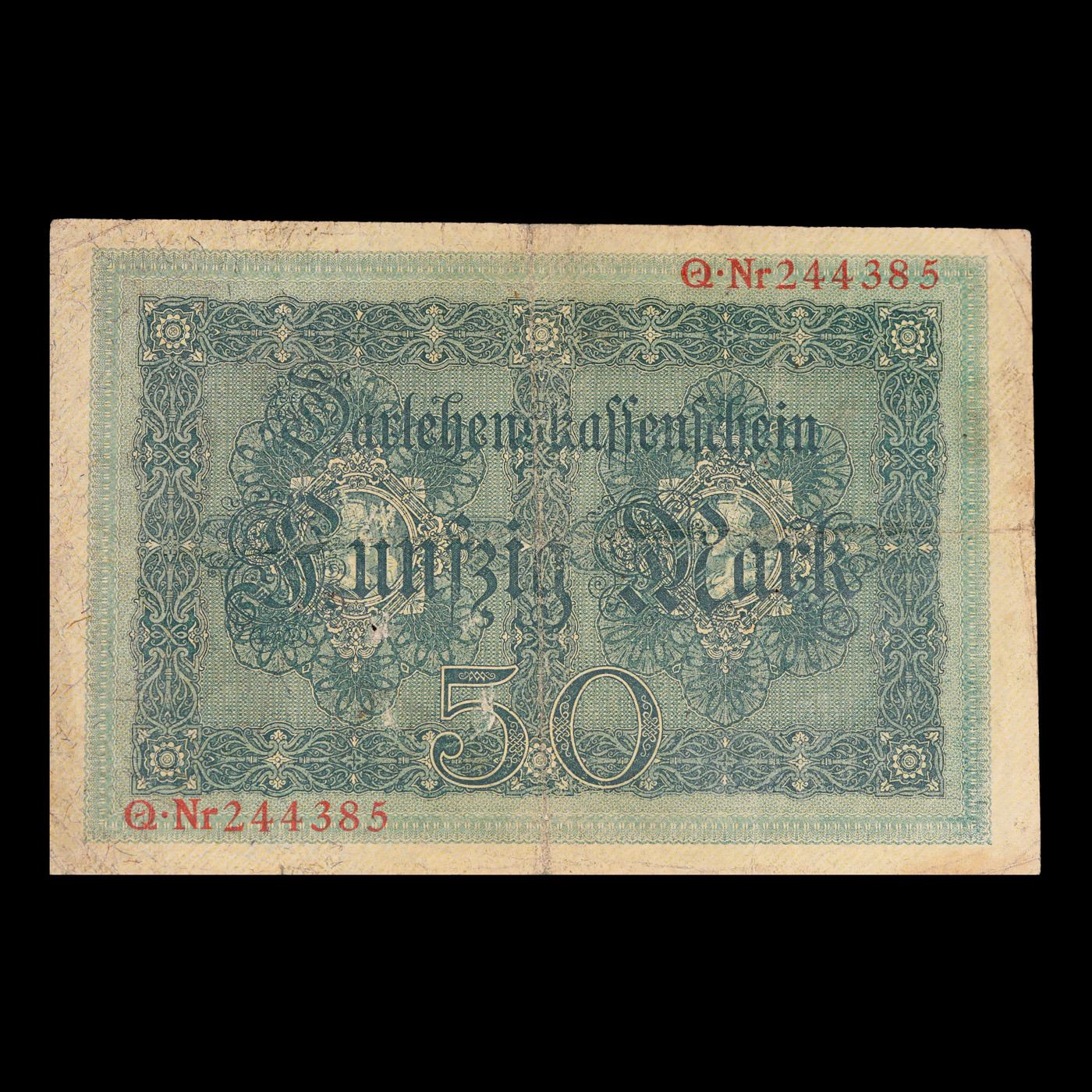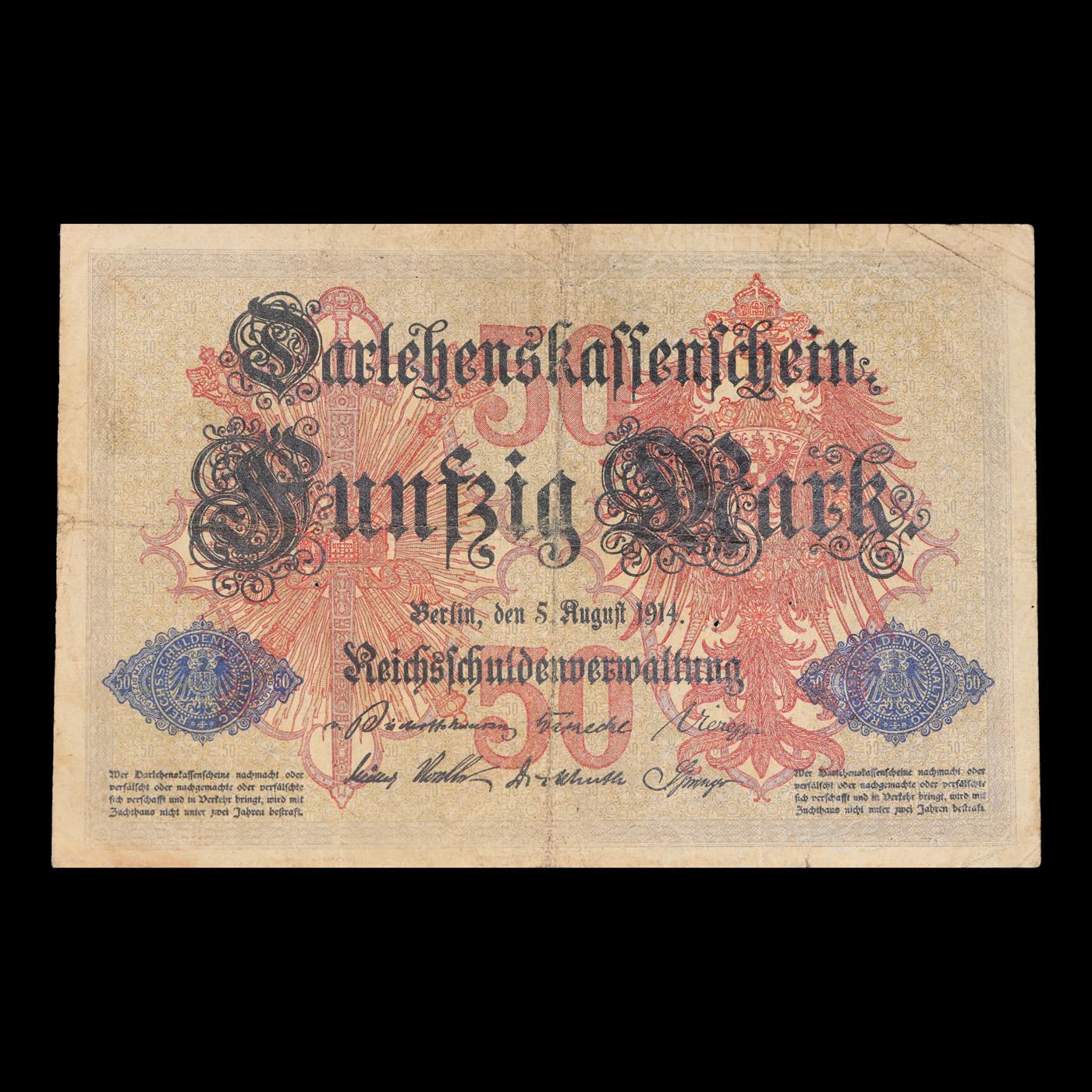 1914 Germany 50 Marks WW1 First Issue P# 49a, Rare 6 Digit Serial! Grades vf+
