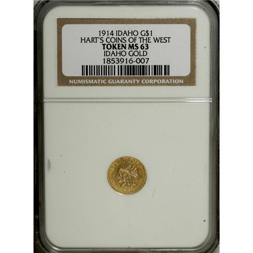 <B>1914 Idaho Gold Esto Perpetua MS63 NGC.</B></I> Obverse: Indian head left with two stars and date below. Reverse: rising sun over mountains and stream. A handsome, undisturbed entry in Hart's "Coins of the West" medal series.<BR><I>From The Twin Hollows Collection, Part Two.</B></I><BR><BR><b>Shipping:</b> Coins & Currency (<a target="_blank" href="http://www.heritageauctions.com/common/shipping.php">view shipping information</a>)