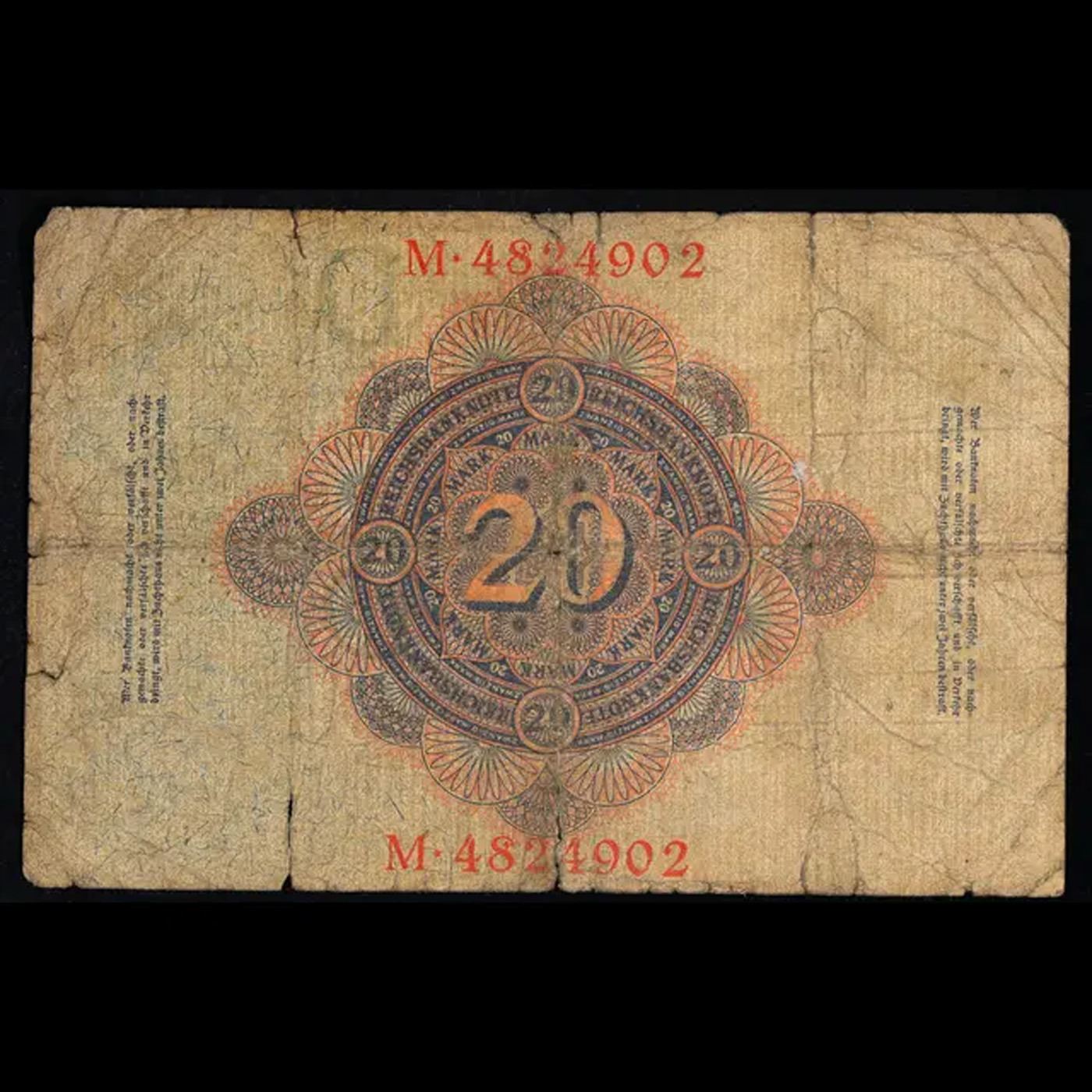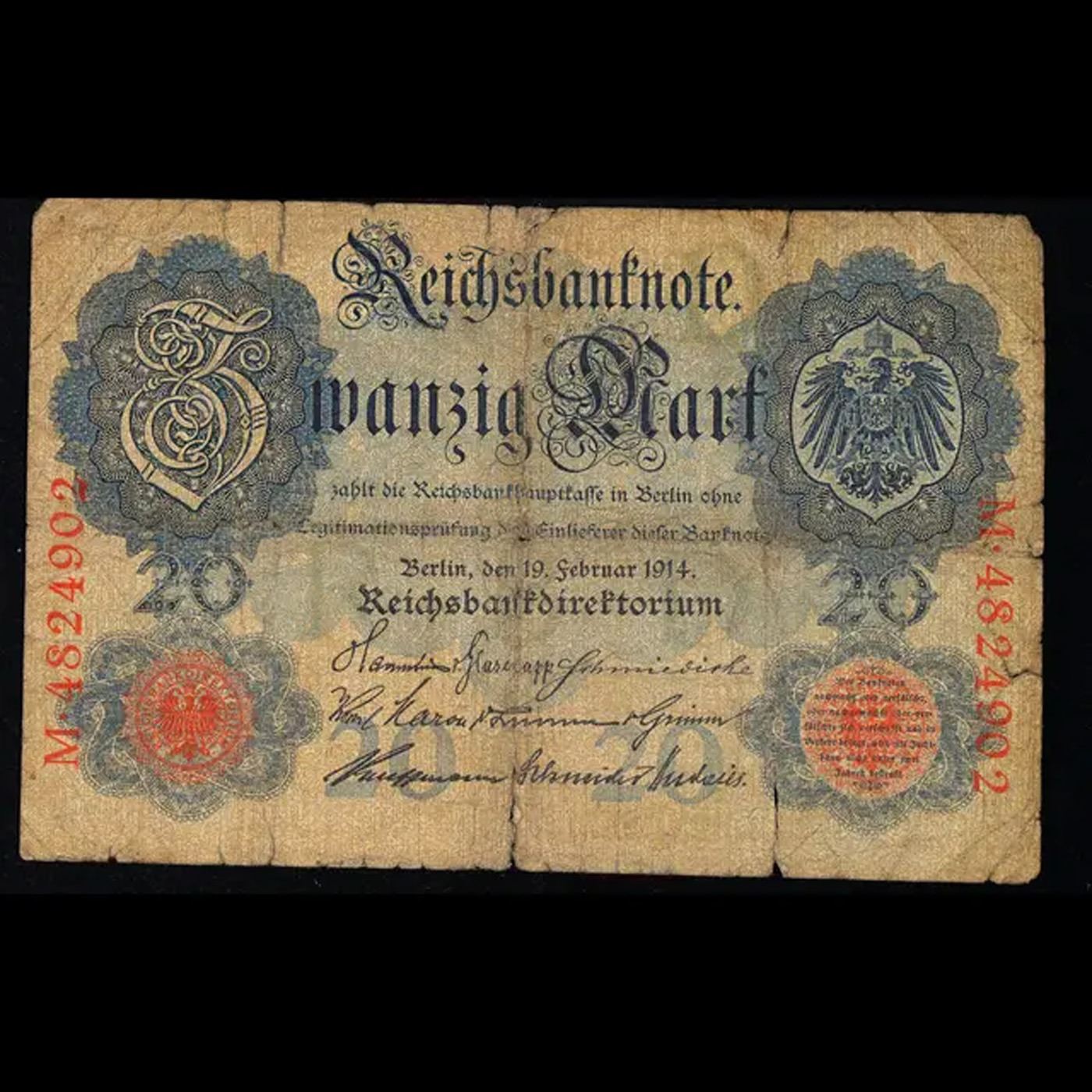 1914 Imperial Germany 20 Mark Note P# 46A Grades vf, very fine.