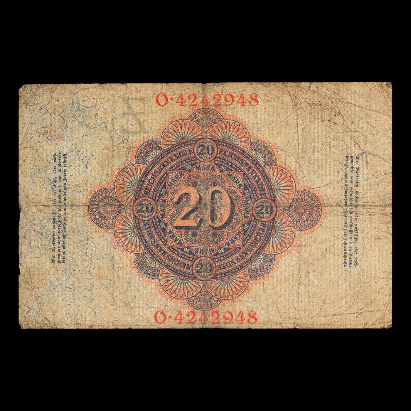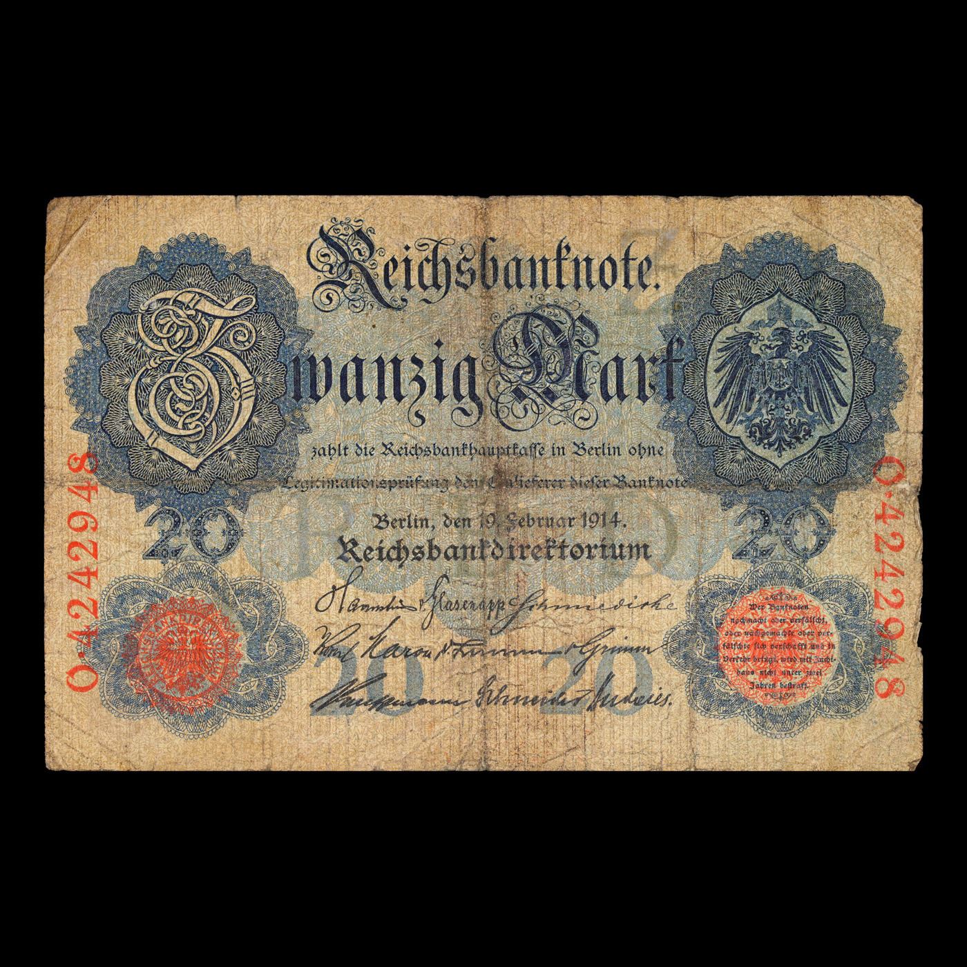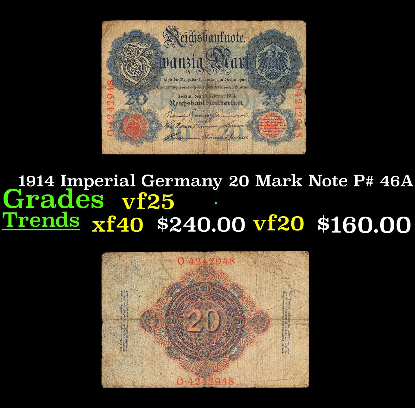 1914 Imperial Germany 20 Mark Note P# 46A Grades vf+.