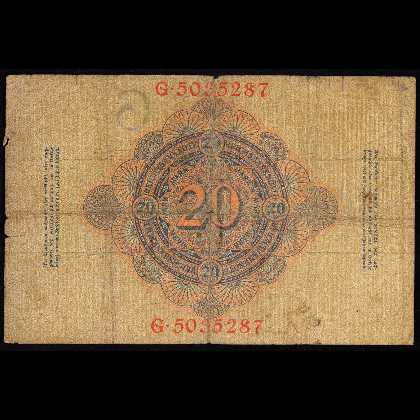 1914 Imperial Germany 20 Mark Note P# 46B Grades vf+.