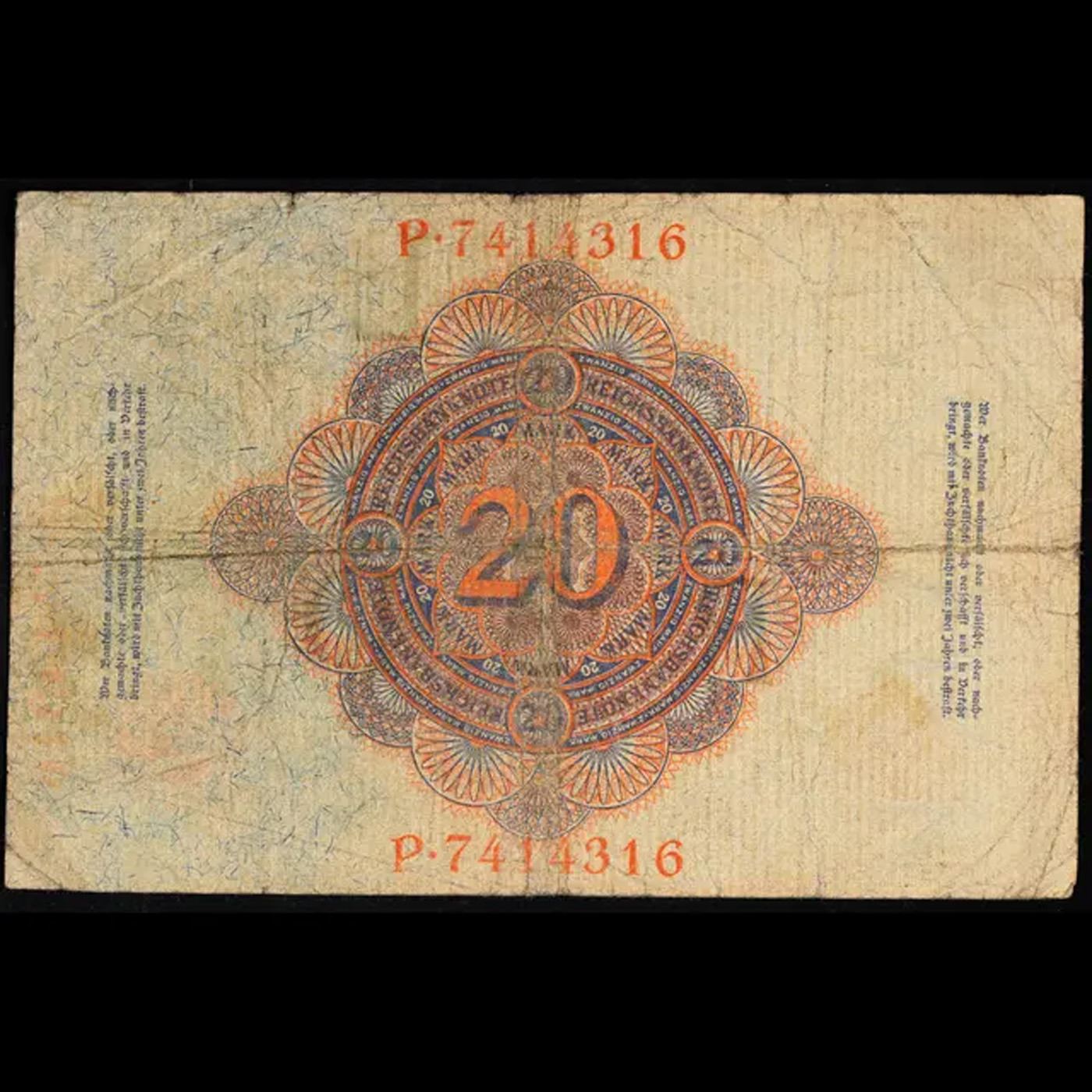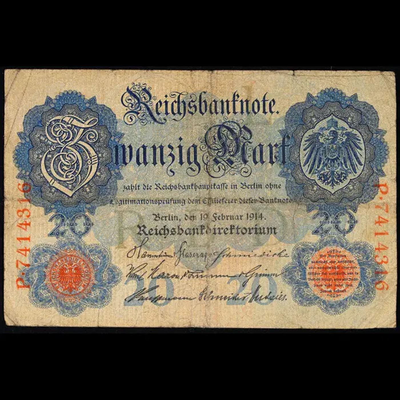 1914 Imperial Germany 20 Mark Note P# 46B Grades vf+.