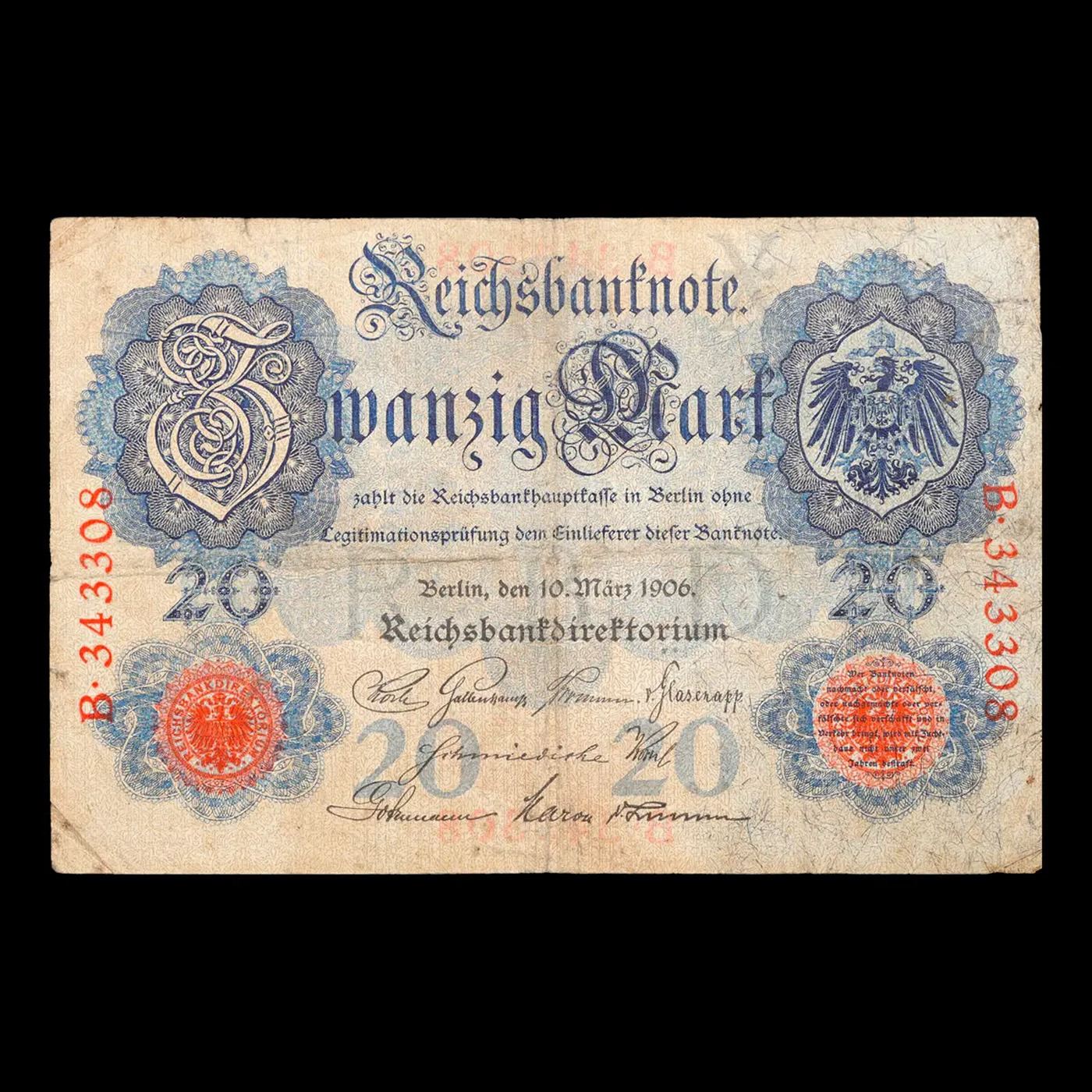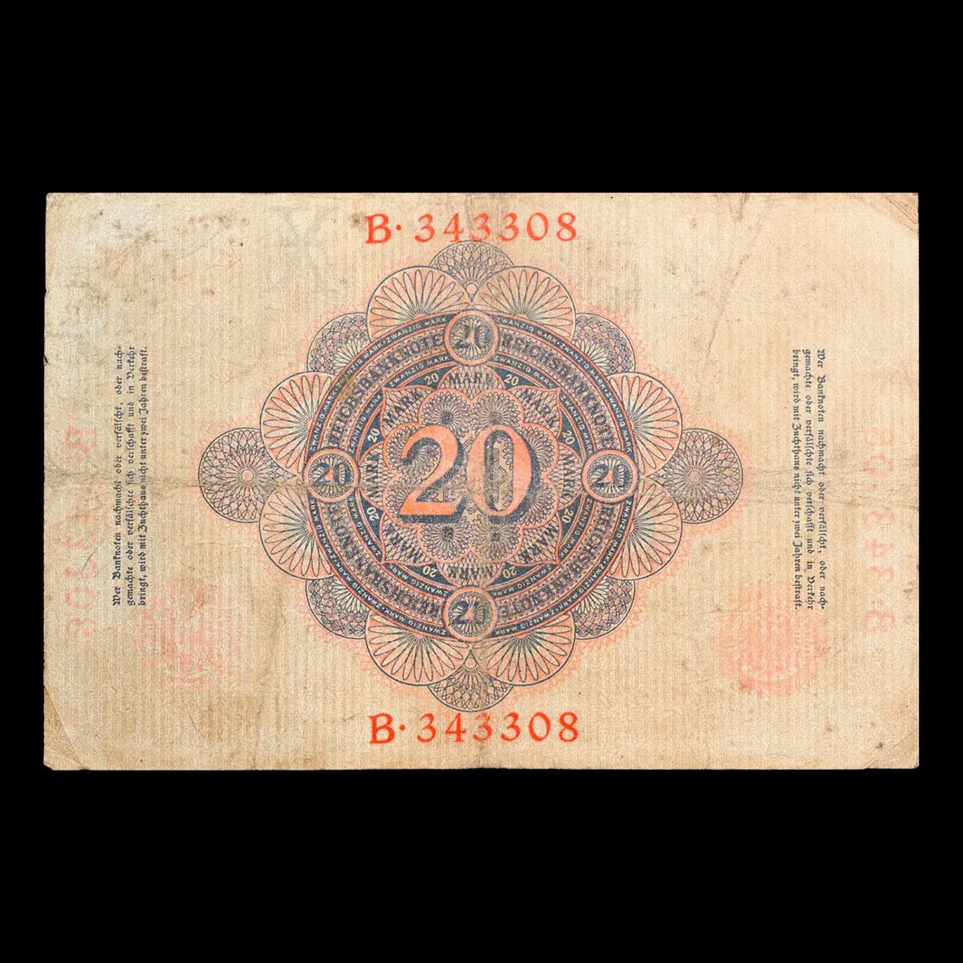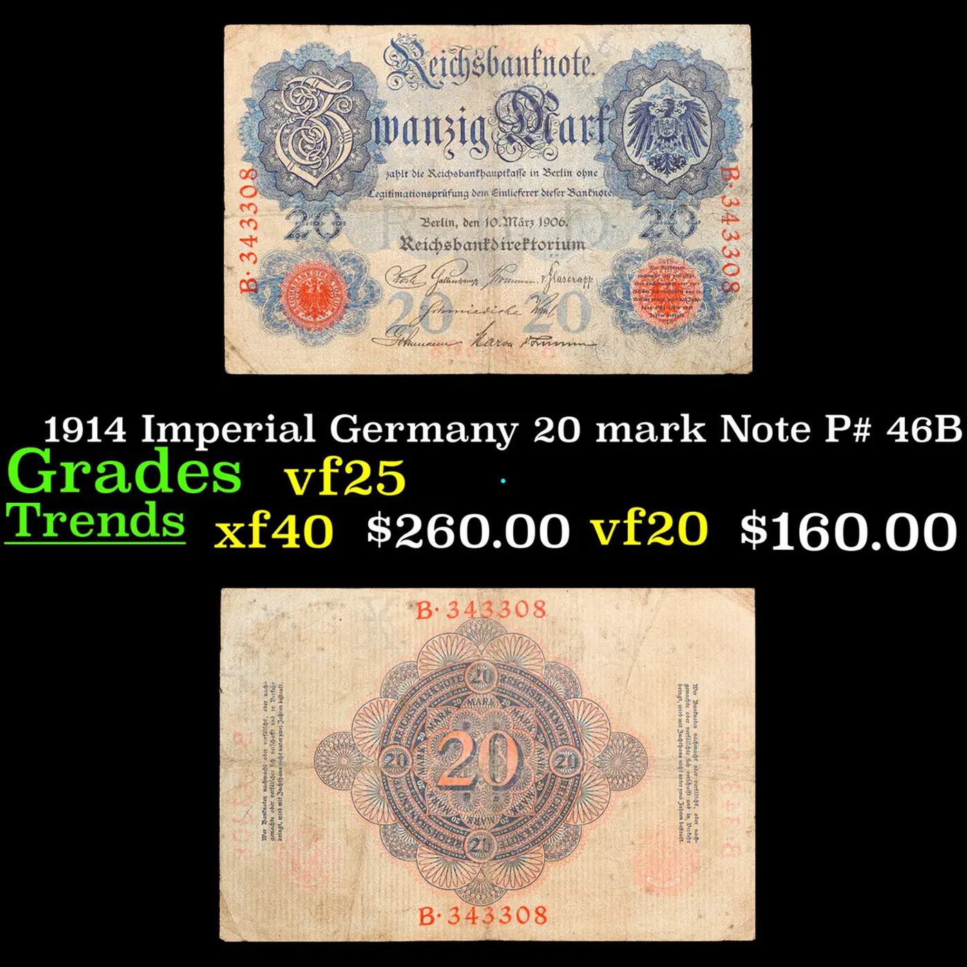 1914 Imperial Germany 20 mark Note P# 46B Grades vf+.