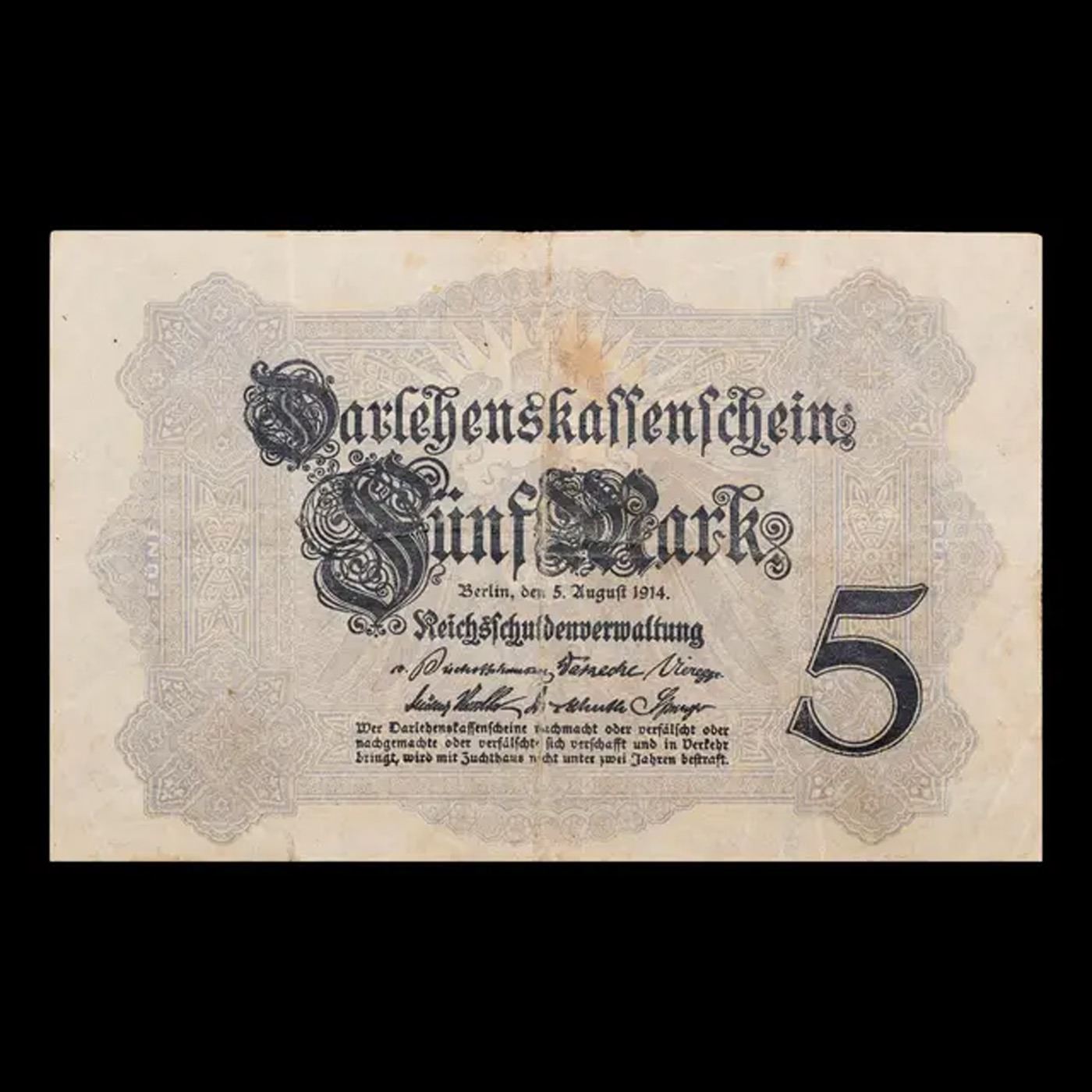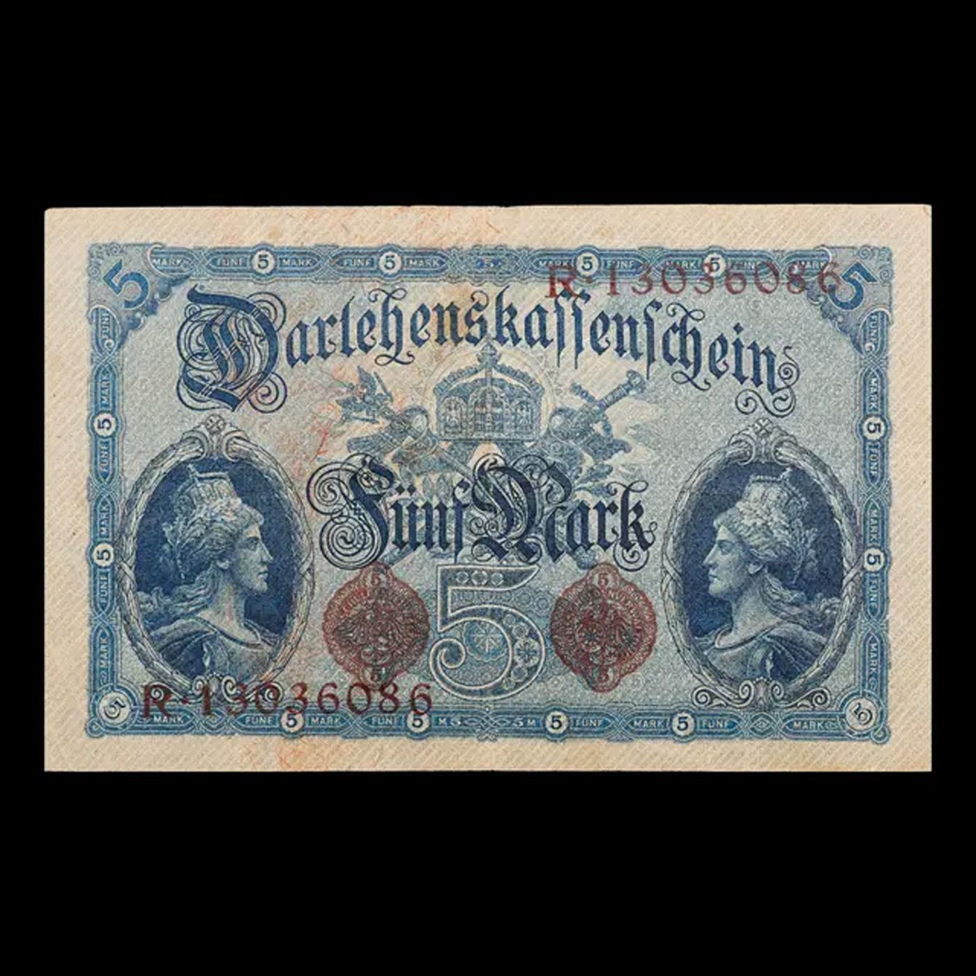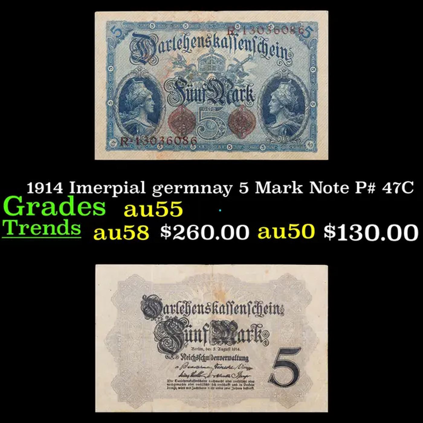 1914 Imperial Germany 5 Mark Note P# 47C Grades Choice AU.