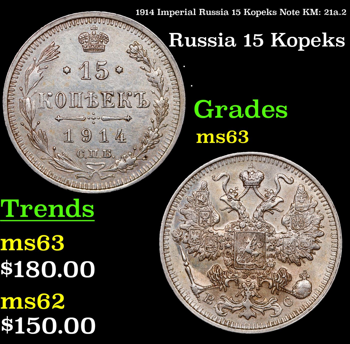 1914 Imperial Russia 15 Kopeks KM: 21a.2 Grades Select Unc.
