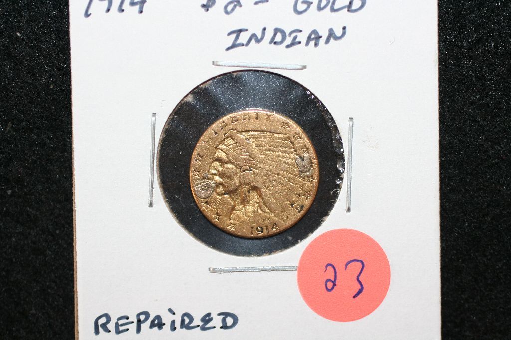 1914 Indian Chief $2 1/2 Gold Coin, Repaired