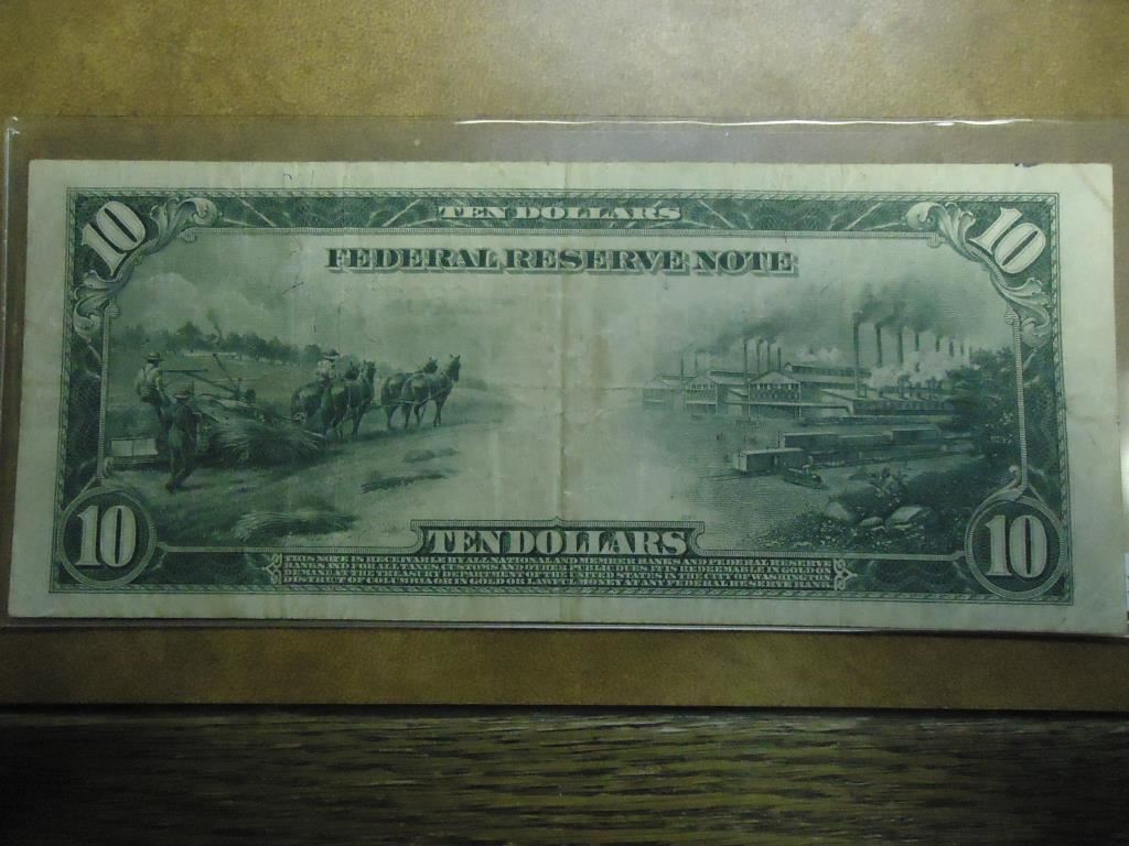 1914 LARGE SIZE $10 FRN BLUE SEAL