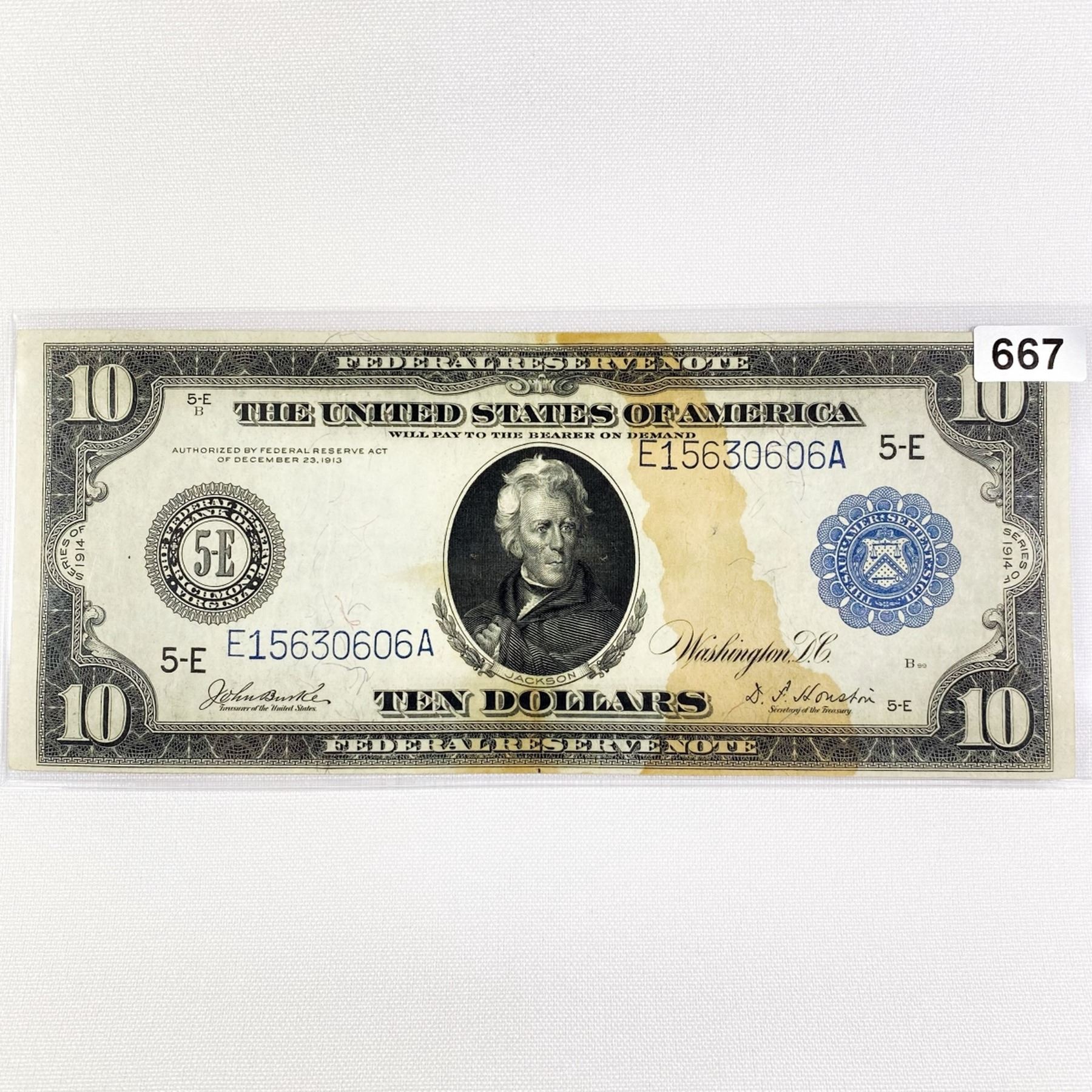 1914 LG $10 Federal Reserve Note LIGHTLY
