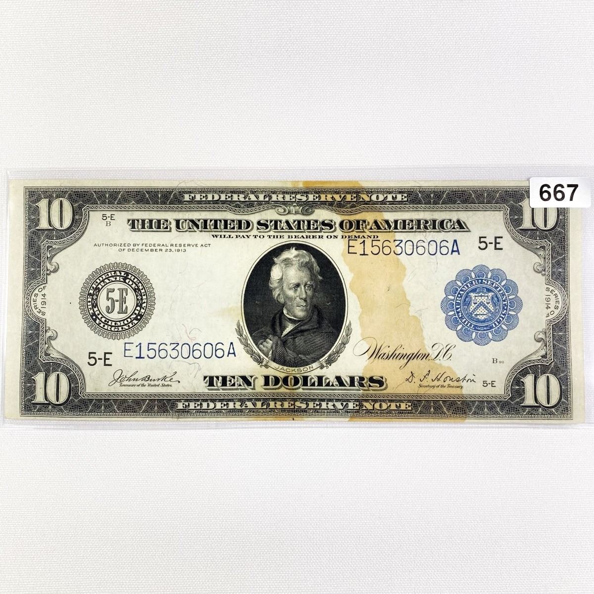 1914 LG $10 Federal Reserve Note LIGHTLY