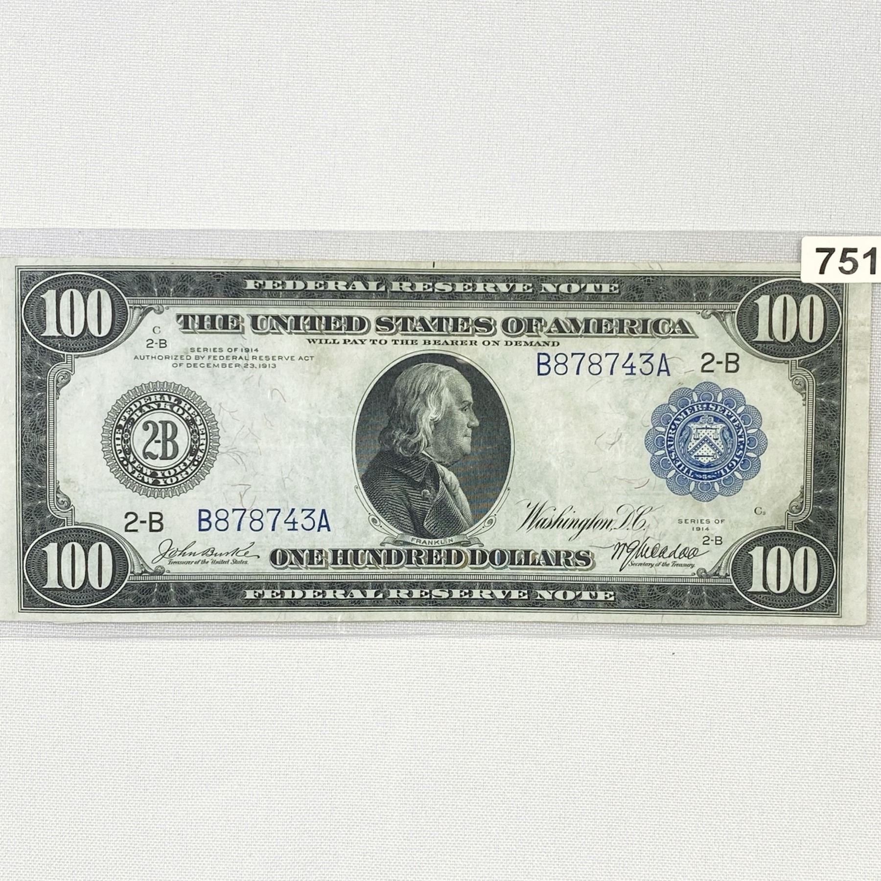 1914 LG $100 Federal Reserve Note CLOSELY UNC