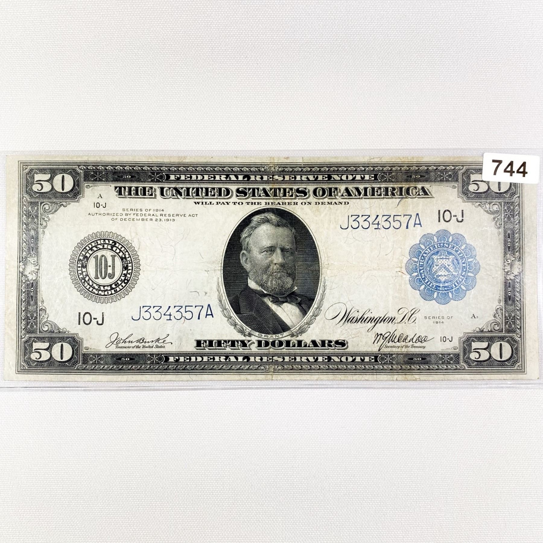1914 LG $50 Federal Reserve Note CLOSELY UNC