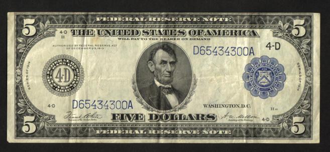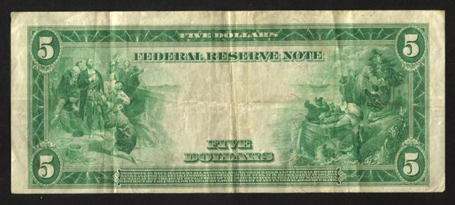 Seldom seen $5 large size blue seal currency note in F-VF condition. Several creases but no tears.