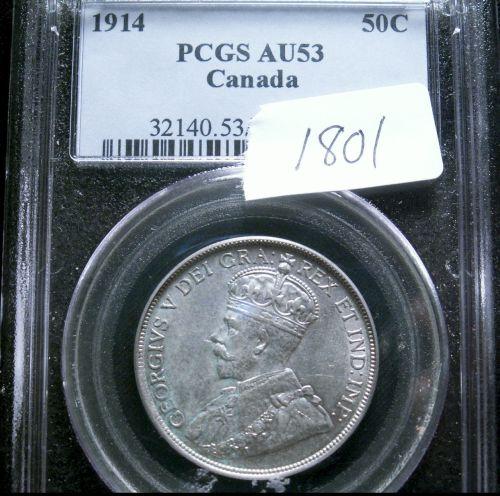 1914 PCGS AU53 brilliant with some lustre remaining. A problem free coin of this semi-key date.