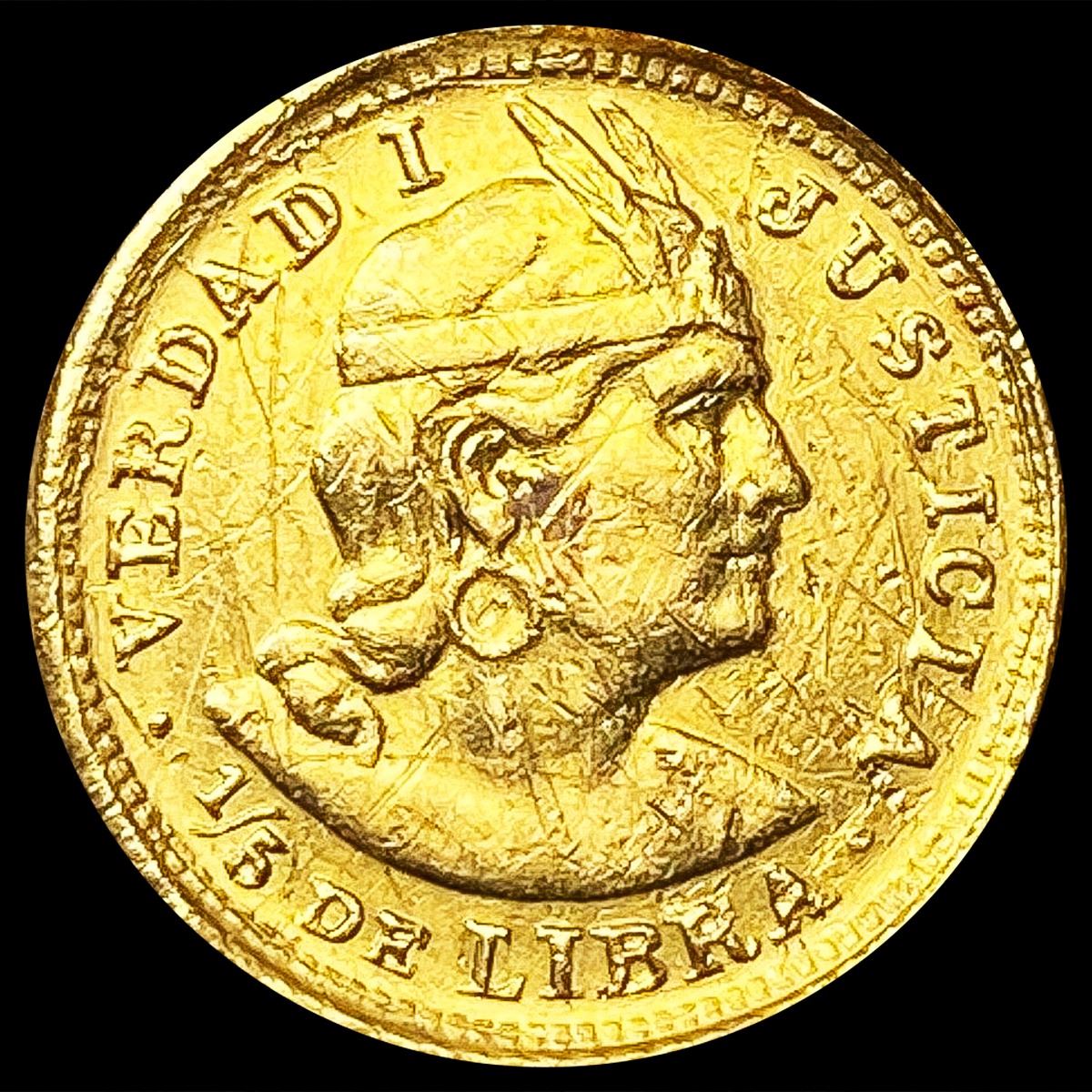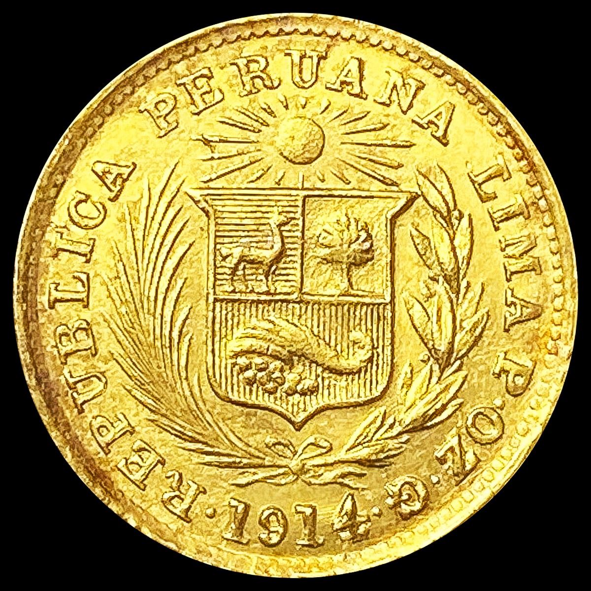 1914 Peru .047 Gold 1/5 Libra NEARLY UNCIRCULATED