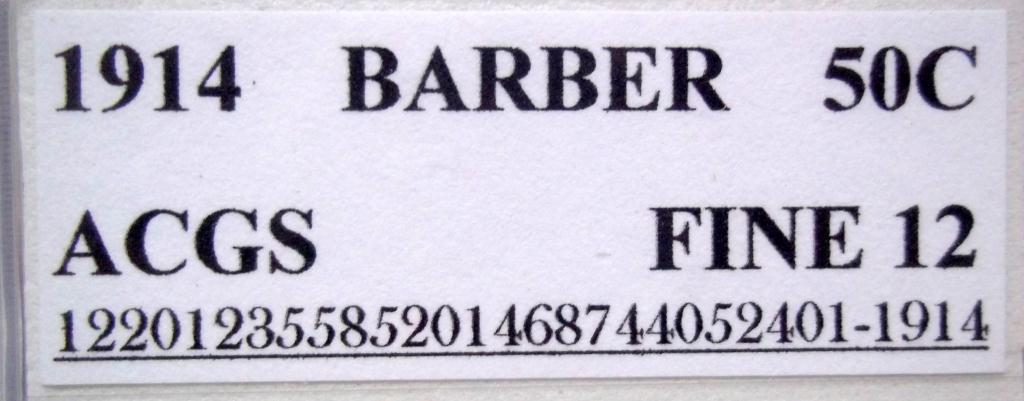 Key Date 1914 Philadelphia Mint Barber Half Dollar. This coin is ACGS Certified Fine-12. This is the most sought after, rarest coin in the Barber Half Dollar series. With less than 125,000 pieces minted, it has the lowest mintage of any coin in the series. A great investment for future generations with unlimited upward potential.