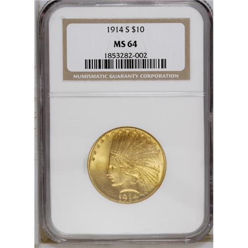 1914-S $10 MS64 NGC. The 1914-S ten dollar, with a min