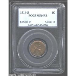 1914-S 1C MS64 Red and Brown PCGS. The 1914-S is one of the semi-key issues in the early Lincoln Cen