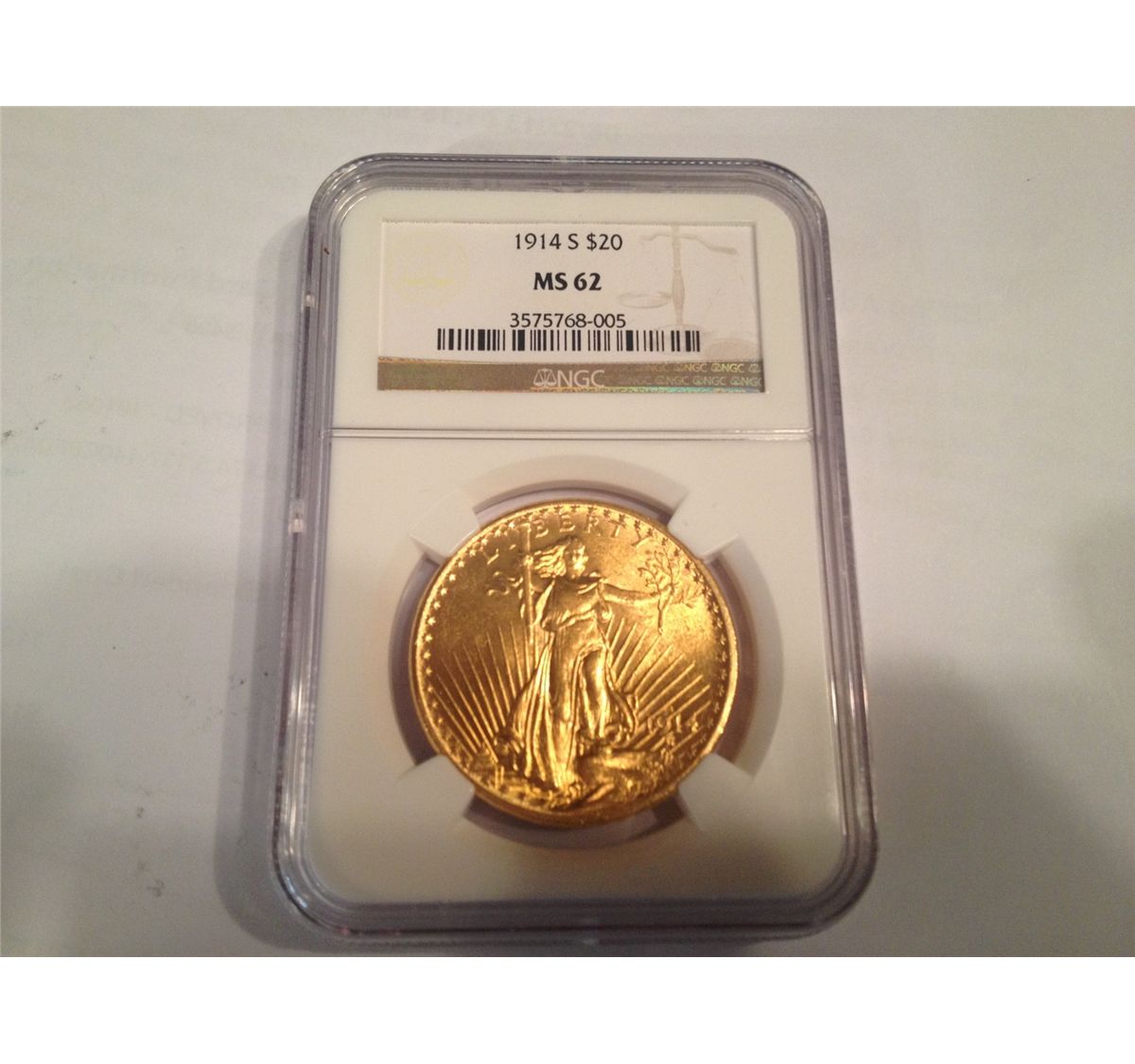 1914-S $20 GOLD ST GAUDENS NGC MS-62