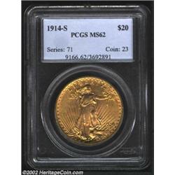 1914-S $20 MS62 PCGS. A bright honey-gold example that has a bold strike, good luster, and nicely pr