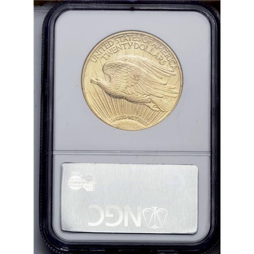 <B>1914-S<$20> MS64 NGC.</B></I> One of the more available mintmarked issues from the teens. Brilliant luster cascades from the beautiful copper-gold surfaces, although there are a few too many minuscule abrasions to qualify for Gem status. The reverse appears high-end for the grade.