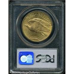 1914-S $20 MS64 PCGS. This lustrous and nicely str <B>1914-S $20 MS64 PCGS.</B></I> This lustrous and nicely struck near-Gem is generally unmarked but does have an interesting small mint-made planchet flaw on the reverse rim near 3 o'clock. <BR><BR><B>Important notice:</B> Heritage usually auctions material at the rate of 200-250 lots per hour. On some occasions eBay Live bid software or the Internet may not be able to keep up with the pace of the auction. We recommend placing a realistic absentee bid now as insurance to avoid disappointment. Occasionally the auctioneer may eliminate or reject an eBay Live bid, and the auctioneer may also reopen a lot after the close of the eBay live bidding (usually because we missed an audience bid), and may reject your bid even if it shows you as the winning bidder. By bidding via eBay Live, you agree that Heritage may award the lot to another bidder at its sole discretion under the circumstances described above or any other reasonable circumstances. Since eBay bids are not shown to us until we open the lot on the floor, we treat those bids just like floor bids. In most cases the floor responds before the eBay bid is presented to us, due to Internet lag time, so for consistency we have made it a policy that floor bids are always considered first over tie eBay live bids. Also please note that all Heritage lots purchased through eBay Live carry a 20% Buyer's Premium. Please make sure you read the Terms and Conditions before you bid. This lot is being auctioned in conjunction with a live floor auction by Heritage Galleries & Auctioneers. All final auction and invoice information will be supplied by Heritage Galleries & Auctioneers, and all other information should be considered preliminary. Lot:7148