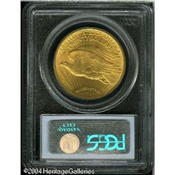 1914-S $20 MS64 PCGS. Well struck with splendid mi <B>1914-S $20 MS64 PCGS.</B></I> Well struck with splendid mint frost on both sides, and absolutely gorgeous red-gold coloration throughout. Other than a handful of tiny nicks, in the obverse fields, the coin seems pristine, and perhaps conservatively graded as a near-Gem. <BR><BR><B>Important notice:</B> Heritage usually auctions material at the rate of 200-250 lots per hour. On some occasions eBay Live bid software or the Internet may not be able to keep up with the pace of the auction. We recommend placing a realistic absentee bid now as insurance to avoid disappointment. Occasionally the auctioneer may eliminate or reject an eBay Live bid, and the auctioneer may also reopen a lot after the close of the eBay live bidding (usually because we missed an audience bid), and may reject your bid even if it shows you as the winning bidder. By bidding via eBay Live, you agree that Heritage may award the lot to another bidder at its sole discretion under the circumstances described above or any other reasonable circumstances. Since eBay bids are not shown to us until we open the lot on the floor, we treat those bids just like floor bids. In most cases the floor responds before the eBay bid is presented to us, due to Internet lag time, so for consistency we have made it a policy that floor bids are always considered first over tie eBay live bids. Also please note that all Heritage lots purchased through eBay Live carry a 20% Buyer's Premium. Please make sure you read the Terms and Conditions before you bid. This lot is being auctioned in conjunction with a live floor auction by Heritage Galleries & Auctioneers. All final auction and invoice information will be supplied by Heritage Galleries & Auctioneers, and all other information should be considered preliminary. Lot:7151
