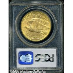 <B>1914-S<$20> MS64 PCGS.</B></I> The granulated surface texture of this piece gives it a matte-like appearance. Few noticeable marks for the grade. <BR><BR><B>Important notice:</B> Heritage usually auctions material at the rate of 200-250 lots per hour. On some occasions eBay Live bid software or the Internet may not be able to keep up with the pace of the auction. We recommend placing a realistic absentee bid now as insurance to avoid disappointment. Occasionally the auctioneer may eliminate or reject an eBay Live bid, and the auctioneer may also reopen a lot after the close of the eBay live bidding (usually because we missed an audience bid), and may reject your bid even if it shows you as the winning bidder. By bidding via eBay Live, you agree that Heritage may award the lot to another bidder at its sole discretion under the circumstances described above or any other reasonable circumstances. Since eBay bids are not shown to us until we open the lot on the floor, we treat those bids just like floor bids. In most cases the floor responds before the eBay bid is presented to us, due to Internet lag time, so for consistency we have made it a policy that floor bids are always considered first over tie eBay live bids. Also please note that all Heritage lots purchased through eBay Live carry a 20% Buyer's Premium. Please make sure you read the Terms and Conditions before you bid. </span></font></tr></table></td></tr></table>
