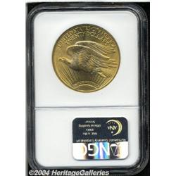 <B>1914-S<$20> MS65 NGC.</B></I> Potent bright luster and radiant peach color endow this boldly struck and appropriately unabraded Gem.<BR><I>From The Sarasota Collection.</B></I> <BR><BR><B>Important notice:</B> Heritage usually auctions material at the rate of 200-250 lots per hour. On some occasions eBay Live bid software or the Internet may not be able to keep up with the pace of the auction. We recommend placing a realistic absentee bid now as insurance to avoid disappointment. Occasionally the auctioneer may eliminate or reject an eBay Live bid, and the auctioneer may also reopen a lot after the close of the eBay live bidding (usually because we missed an audience bid), and may reject your bid even if it shows you as the winning bidder. By bidding via eBay Live, you agree that Heritage may award the lot to another bidder at its sole discretion under the circumstances described above or any other reasonable circumstances. Since eBay bids are not shown to us until we open the lot on the floor, we treat those bids just like floor bids. In most cases the floor responds before the eBay bid is presented to us, due to Internet lag time, so for consistency we have made it a policy that floor bids are always considered first over tie eBay live bids. Also please note that all Heritage lots purchased through eBay Live carry a 20% Buyer's Premium. Please make sure you read the Terms and Conditions before you bid. </span></font></tr></table></td></tr></table>