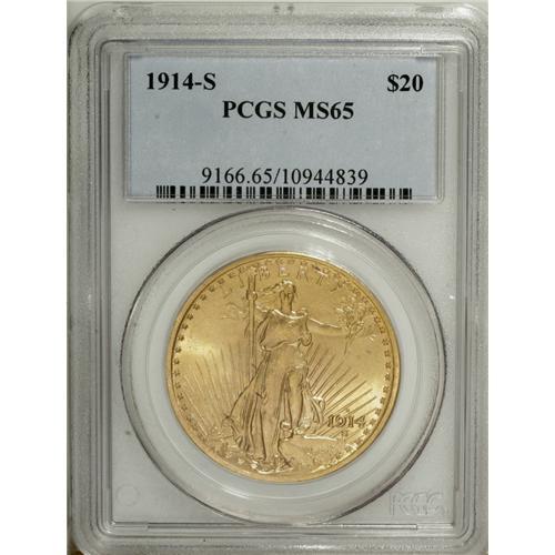 1914-S $20 MS65 PCGS. This example is sharply struck,