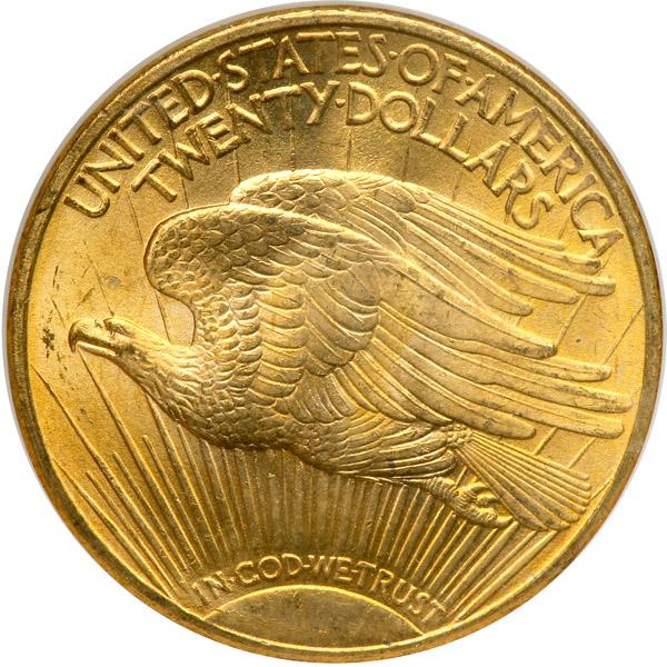 1914-S $20 St. Gaudens. NGC graded MS-66. Lovely delicate golden toning. In an old NGC holder. An appealing fresh golden-fresh specimen, well struck, and unmarred by discoloration or heavy contact marks. Quite difficult to encounter in this nice a grade showing full MS66-level luster and bloom. At the same time that the luster blossoms, substantial detail reveals itself on the highpoints of this exceptional example. Pop 142; 7 finer (PCGS # 9166) .