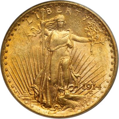 1914-S $20 St. Gaudens. PCGS graded MS-62. Toned (PCGS # 9166).