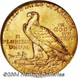 <table><tr><td><table><tr><td>1914-S $5 MS63 NGC. Well struck for this conditionally elusive date, with original reddish-gold color and appealing mint luster. The mintmark is visible but only partially readable, often referred to as a "blob." Surface marks are sparse and hardly distracting. A difficult coin at all levels of Uncirculated. Population: 8 in 63, 5 finer (4/04). <BR><BR><B>Important notice:</B> Heritage usually auctions material at the rate of 200-250 lots per hour. On some occasions eBay Live bid software or the Internet may not be able to keep up with the pace of the auction. We recommend placing a realistic absentee bid now as insurance to avoid disappointment. Occasionally the auctioneer may eliminate or reject an eBay Live bid, and the auctioneer may also reopen a lot after the close of the eBay live bidding (usually because we missed an audience bid), and may reject your bid even if it shows you as the winning bidder. By bidding via eBay Live, you agree that Heritage may award the lot to another bidder at its sole discretion under the circumstances described above or any other reasonable circumstances. Since eBay bids are not shown to us until we open the lot on the floor, we treat those bids just like floor bids. In most cases the floor responds before the eBay bid is presented to us, due to Internet lag time, so for consistency we have made it a policy that floor bids are always considered first over tie eBay live bids. Also please note that all Heritage lots purchased through eBay Live carry a 20% Buyer's Premium. Please make sure you read the Terms and Conditions before you bid. <BR><BR><B>IMPORTANT ANNOUNCEMENT ABOUT RESERVES:</B> Heritage now divulges all reserves on its web site 7 days before every auction. If you want to know whether the reserve on this lot has been met, and if not, what the reserve amount is, please visit this lot page on the HeritageCoin.com web site, or email: bid@HeritageGalleries.com </span></font></td></tr></table></td></tr></table>
