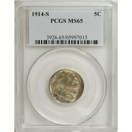 1914-S 5C MS65 PCGS. Well struck and lustrous, with at