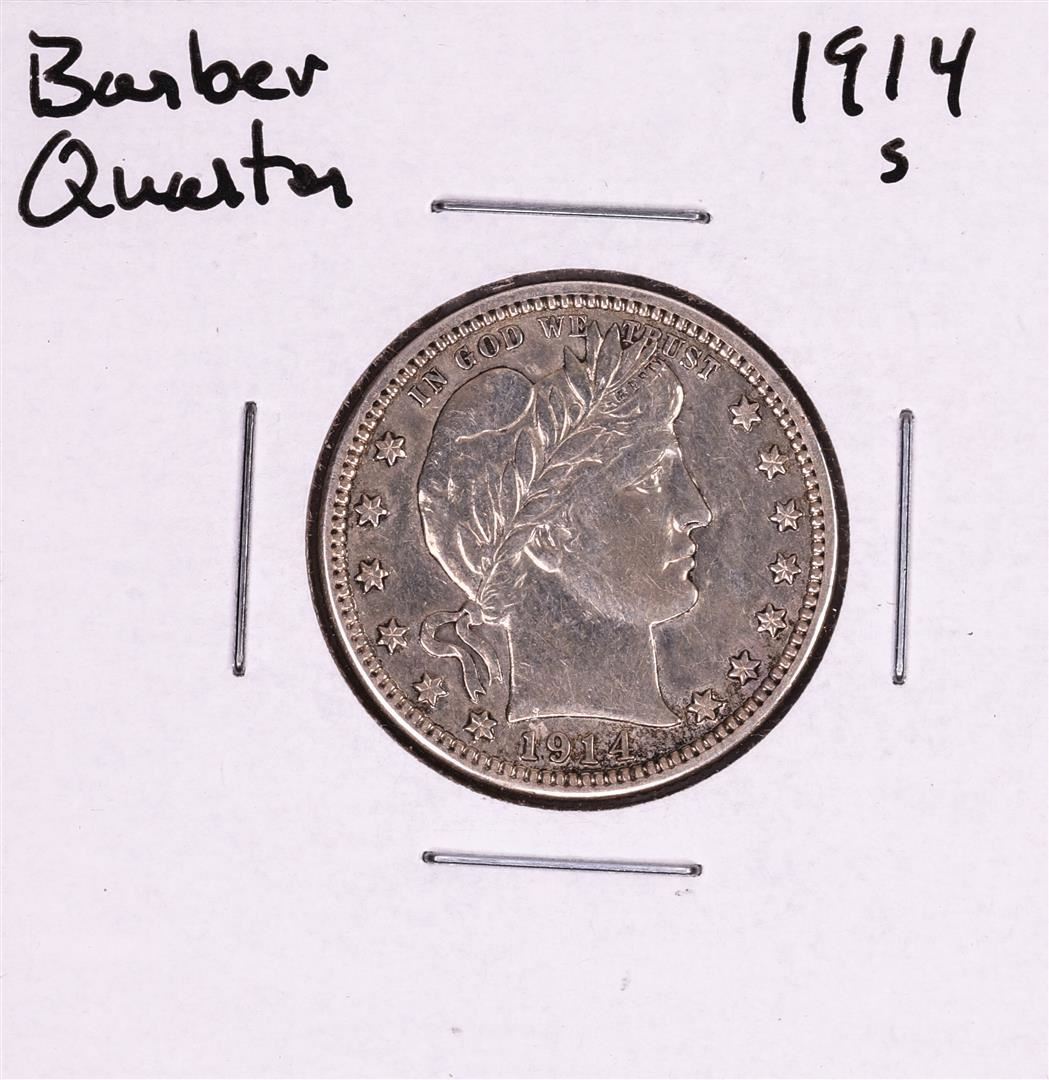 One 1914-S Barber Quarter Coin.