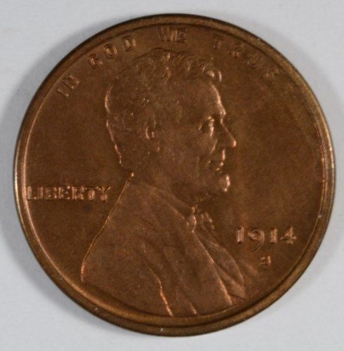 1914 S LINCOLN ONE CENT CHERRY RED GEM BU! FULL RED, ORIGINAL,