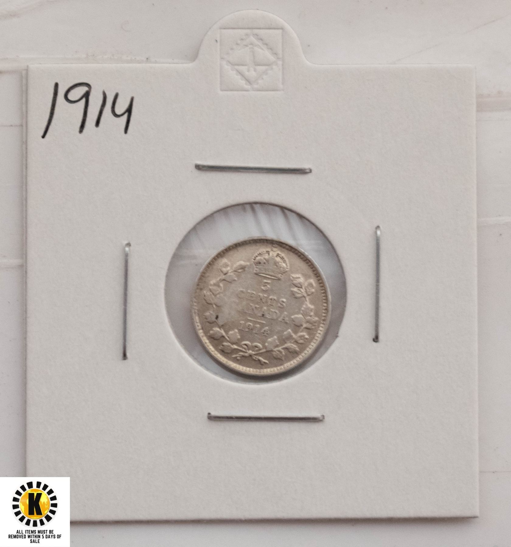 1914 SILVER CANADA 5 CENTS FISH SCALE COIN