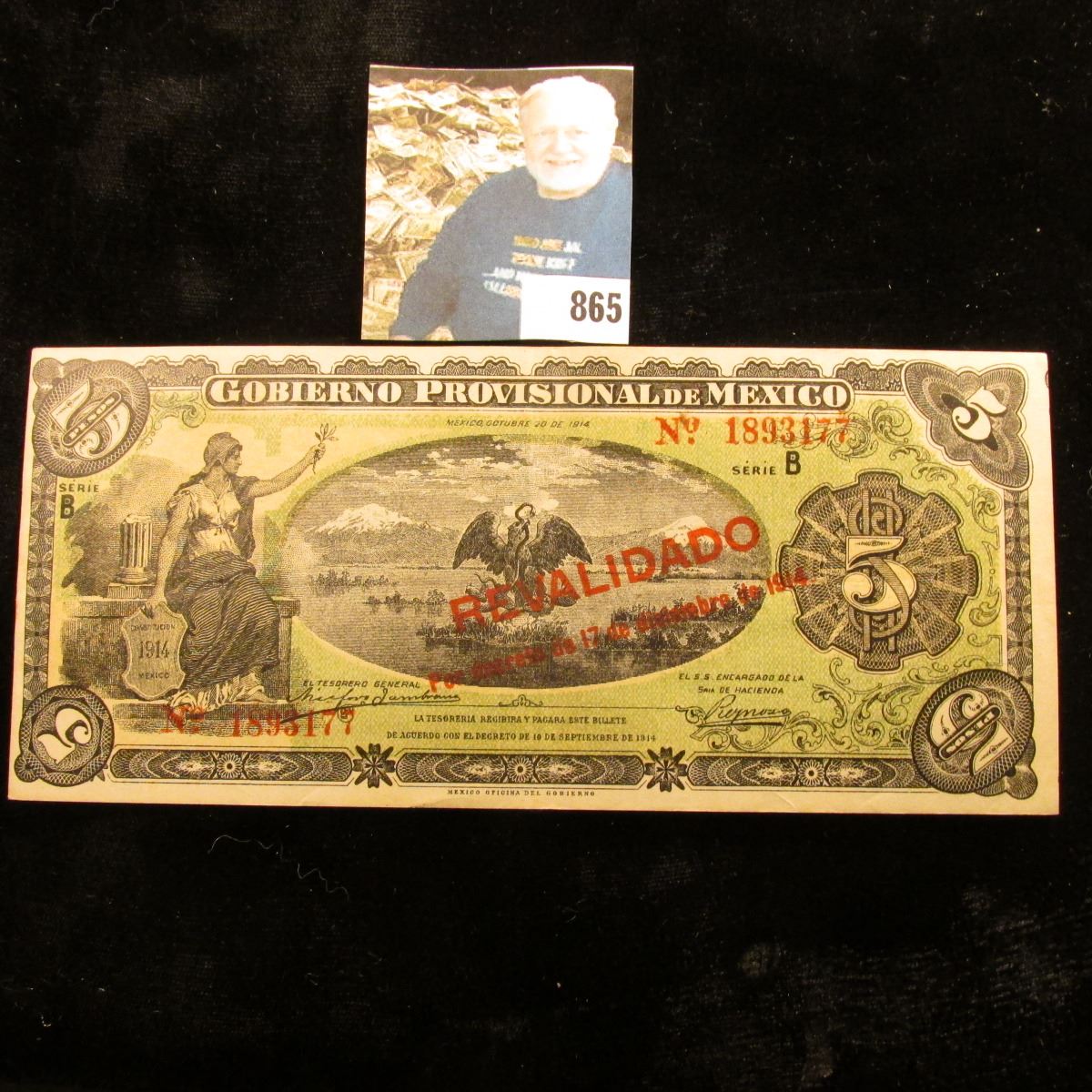 1914 Series B "Gobierno Provisional De Mexico" Five Peso Bank Note. CU.