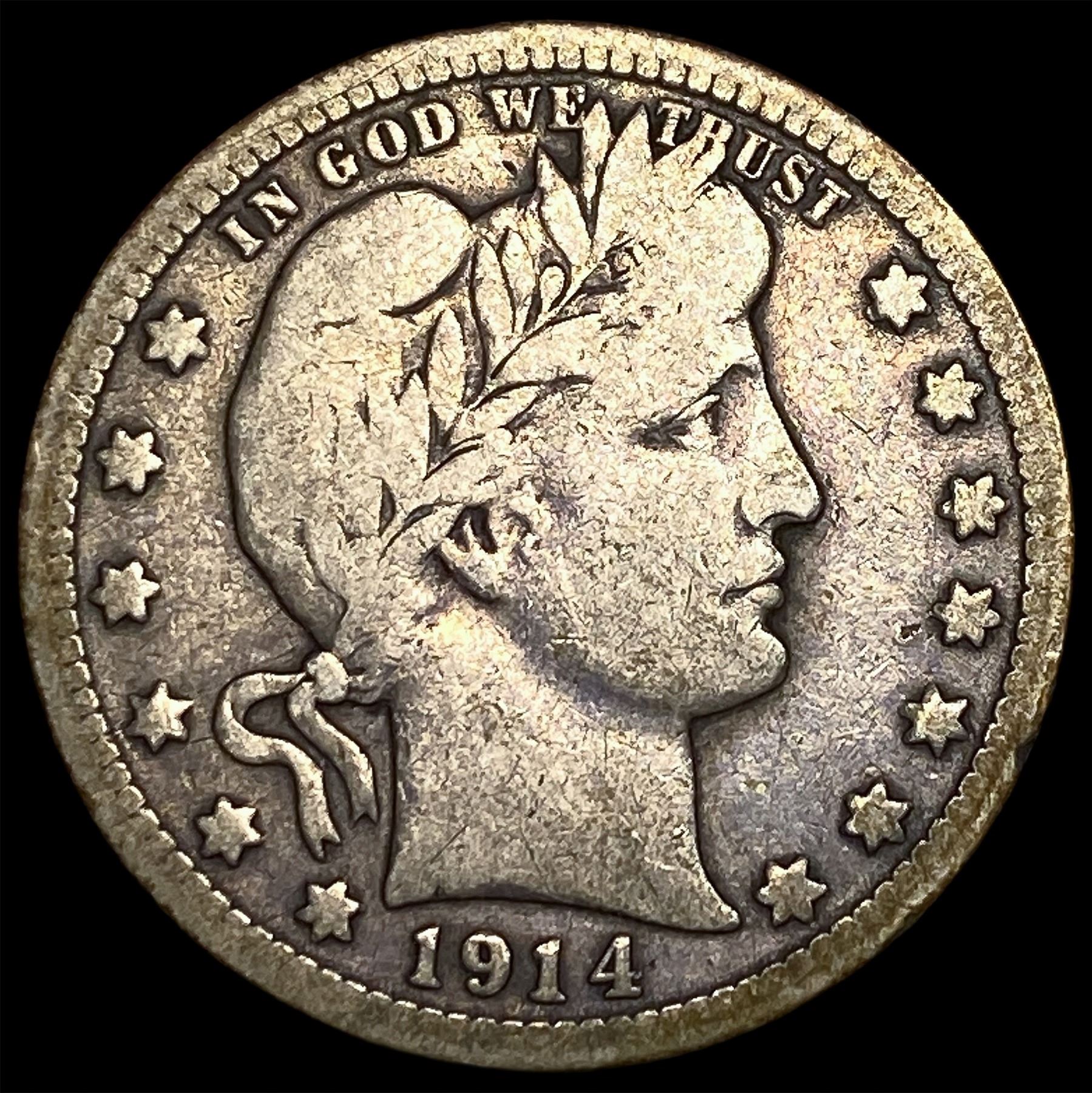 1914 Silver Barber Quarter ABOUT UNCIRCULATED