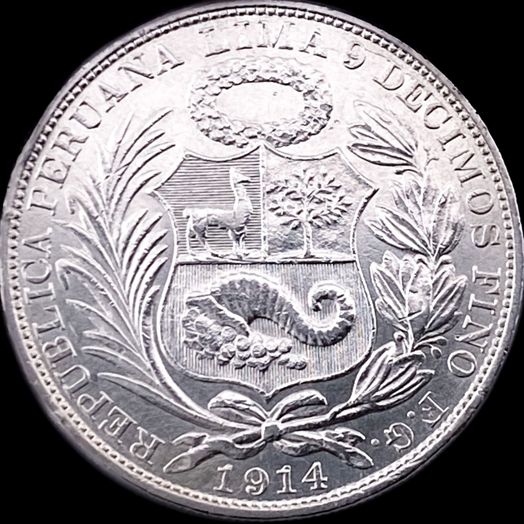 1914 Silver Un Sol Peru CLOSELY UNCIRCULATED