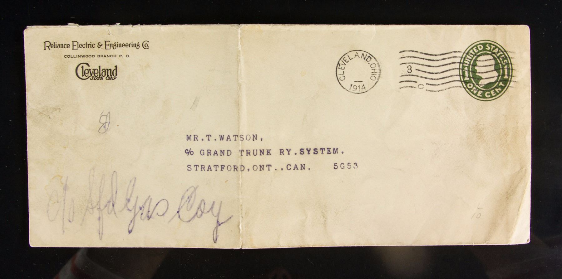 1914 United States 1 cent postal stationary envelope;