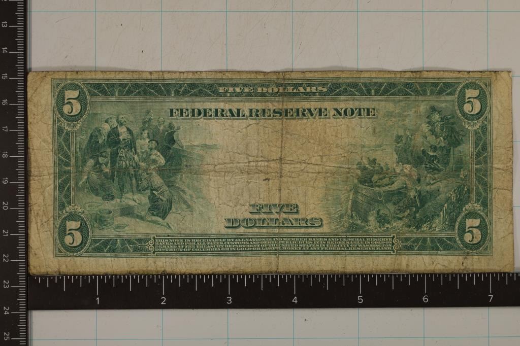 SOME GREEN STAINING ON THE LEFT MIDDLE FROM THE TOP TO THE BOTTOM EDGES, ONE SMALL HOLE NEAR LINCOLNS CHIN