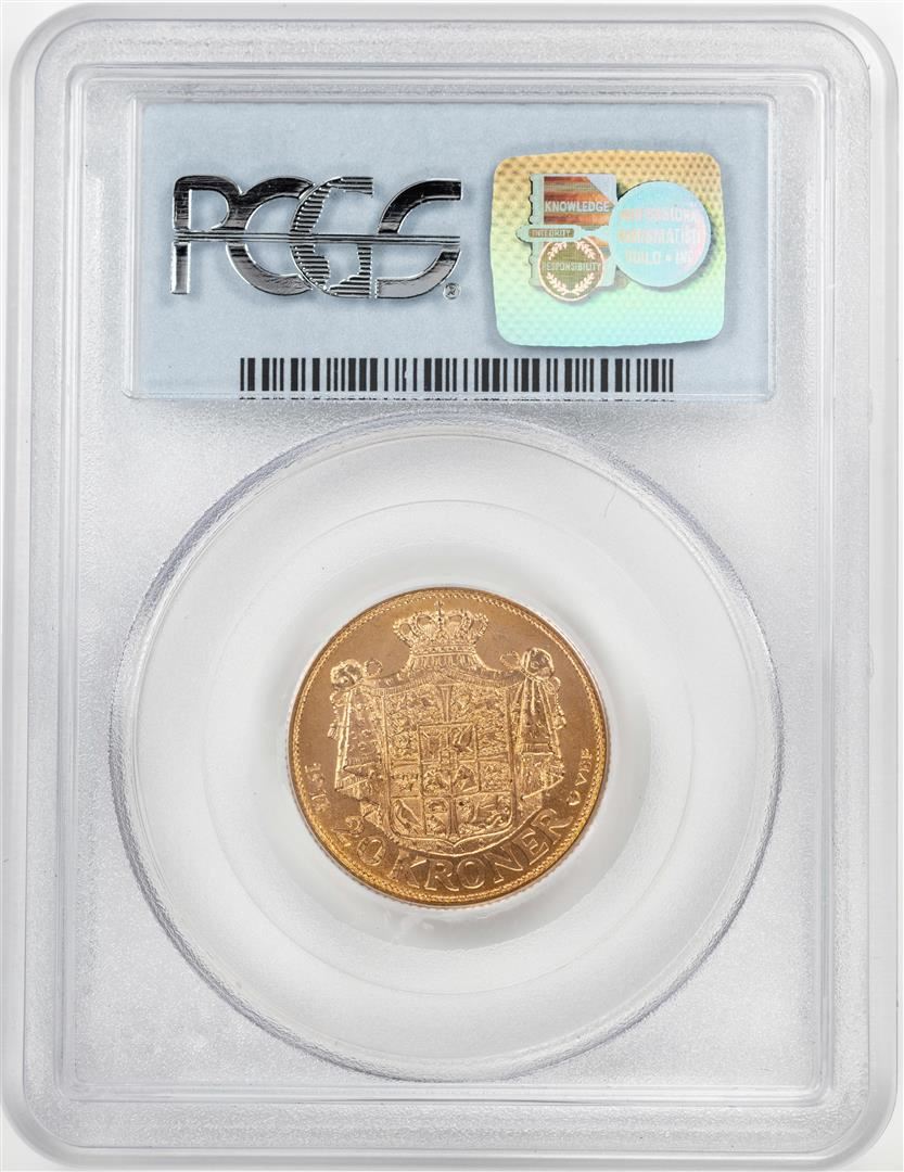 One 1914-VBP Denmark 20 Kroners Gold Coin PCGS MS67. PCGS Graded.