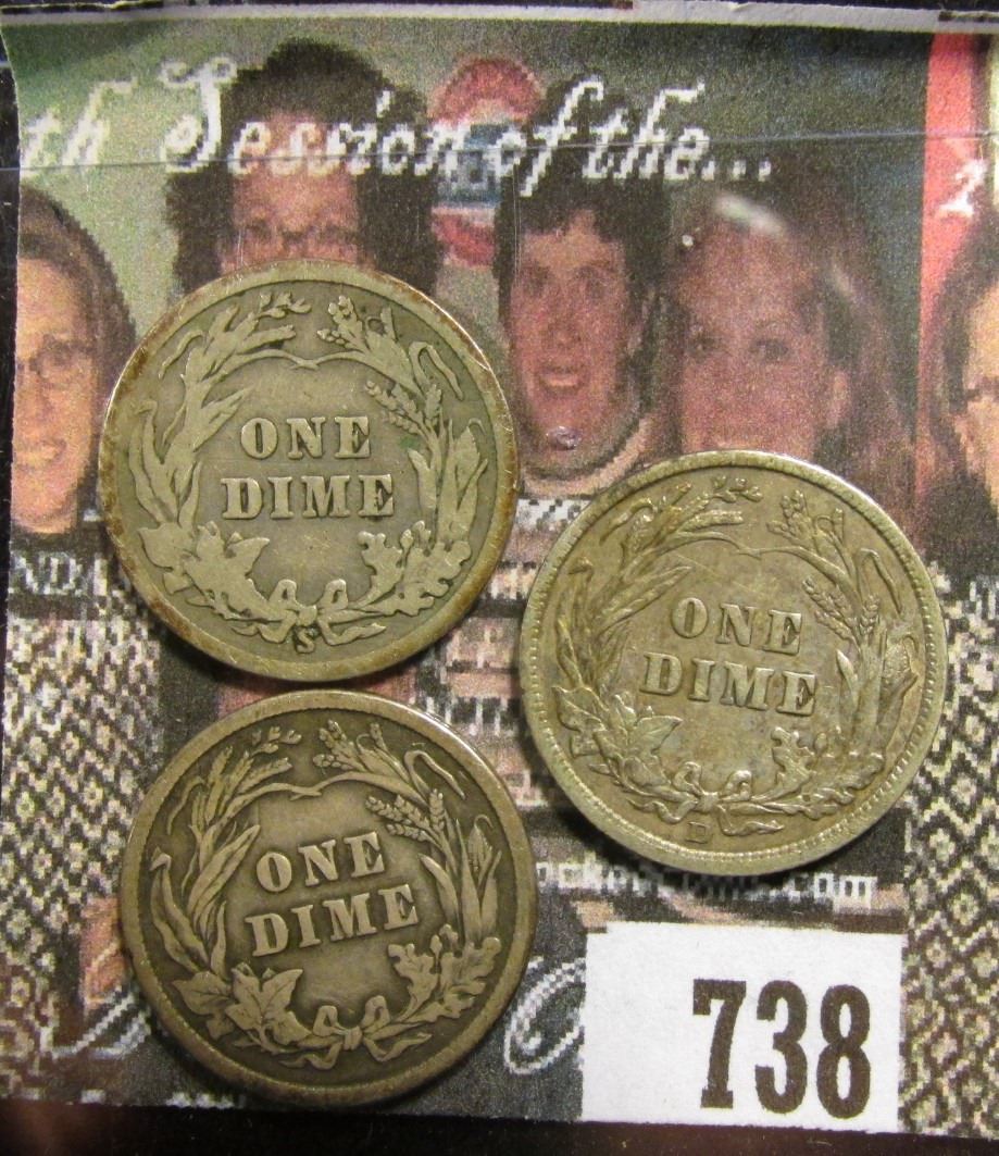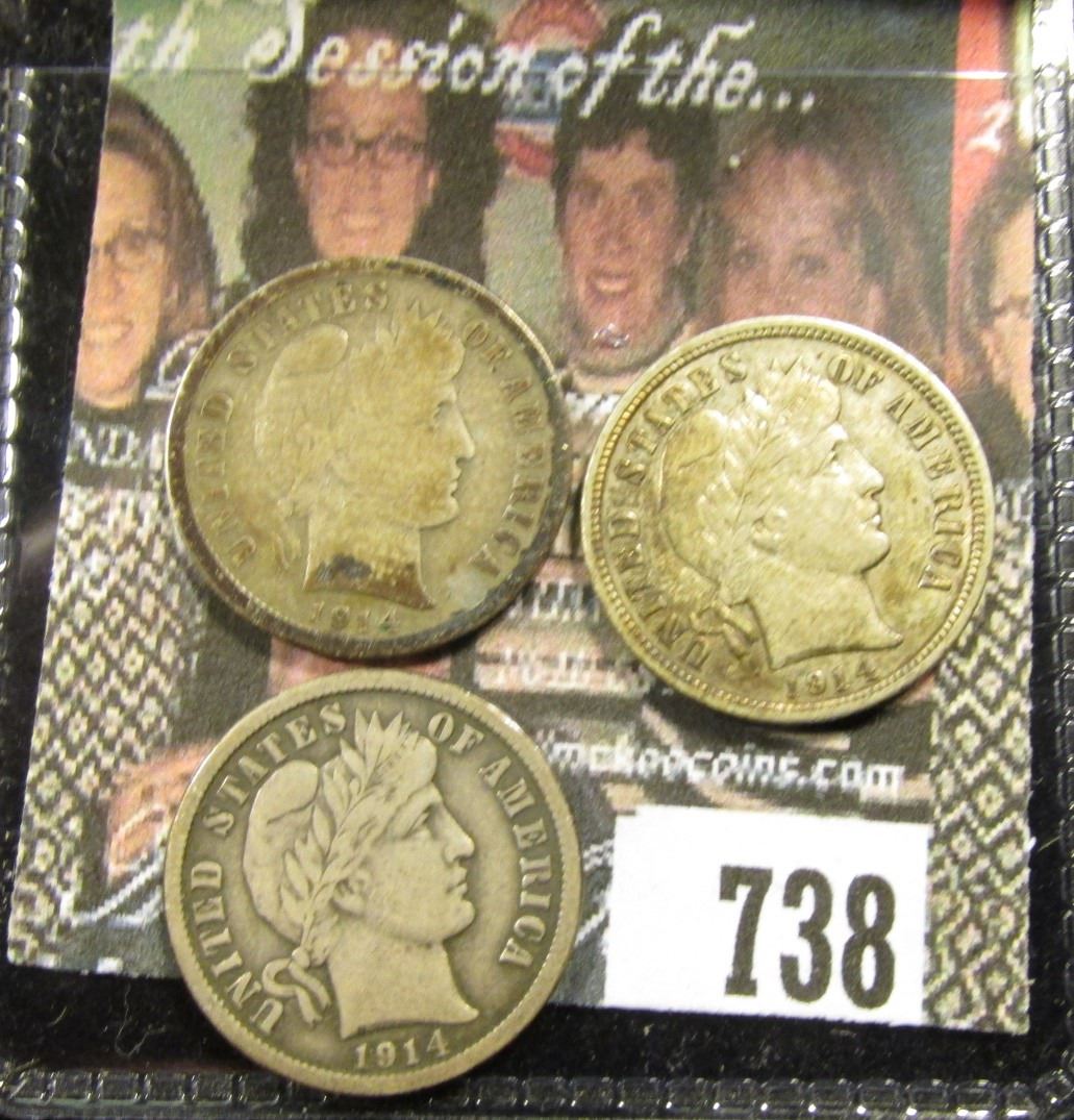 1914 VF, 1914 D VF & 1914 S Barber Dimes.