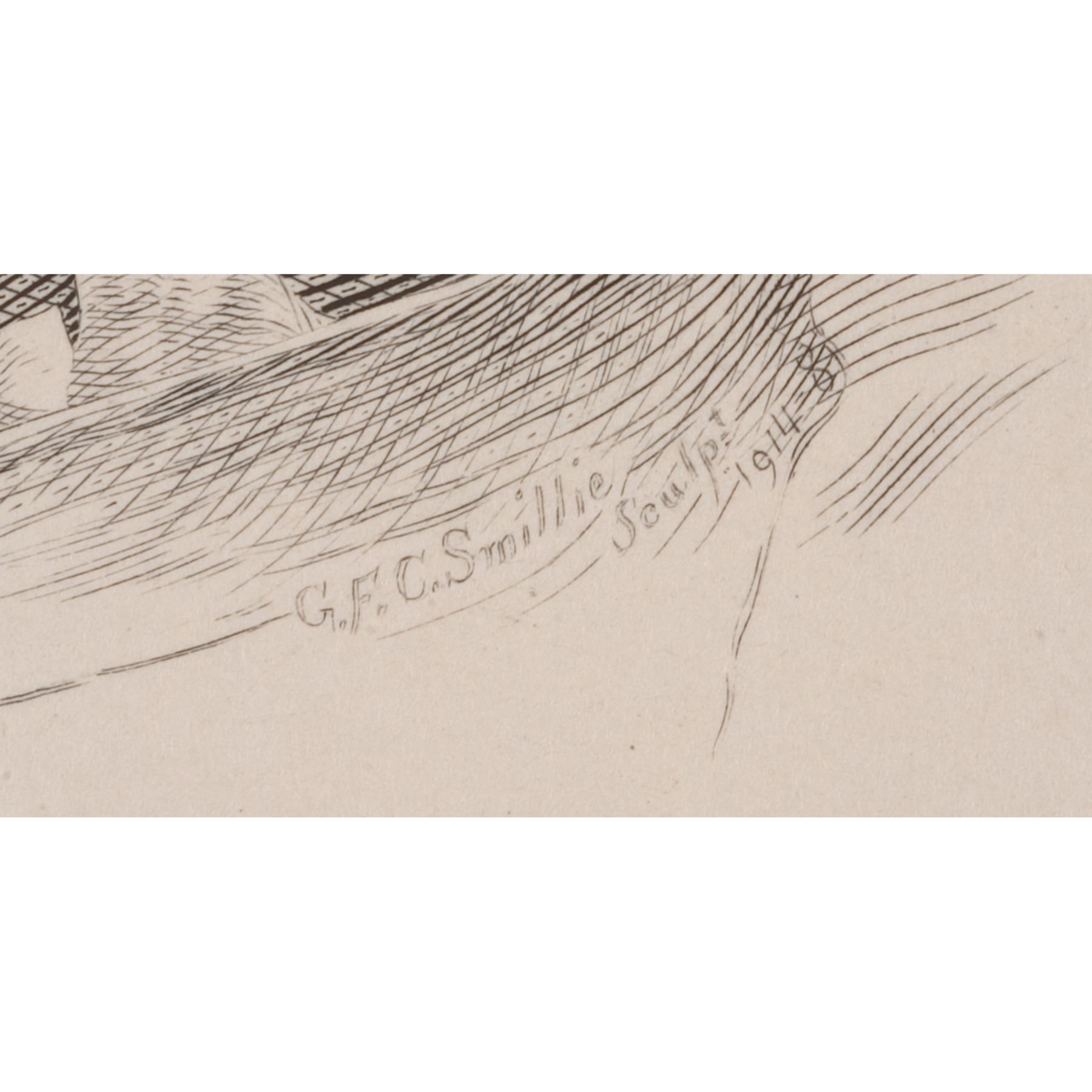 Large Vignette Print measures 5.5” x 4” engraved image is mounted to 14” x 10.75” cardstock. Exquisitely detailed print by Smillie was completed during Wilson’s term of office, and has the artist’s signature and year of printing worked into the lower edge of Wilson’s coat pocket. Near flawless engraving; perfect for matting, framing and display. Portrait is similar to the one that was used on the 1934 $100,000 Federal Reserve Note.